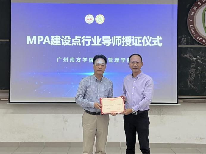 最后,公共管理学院欧崇亚副院长为陆万伟博士颁发MPA建设点行业导师证书。