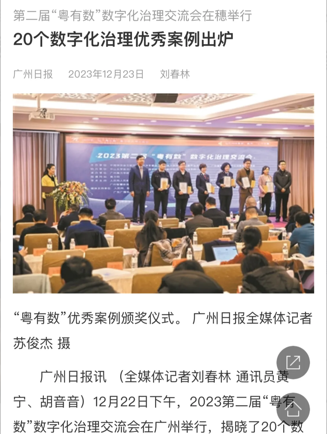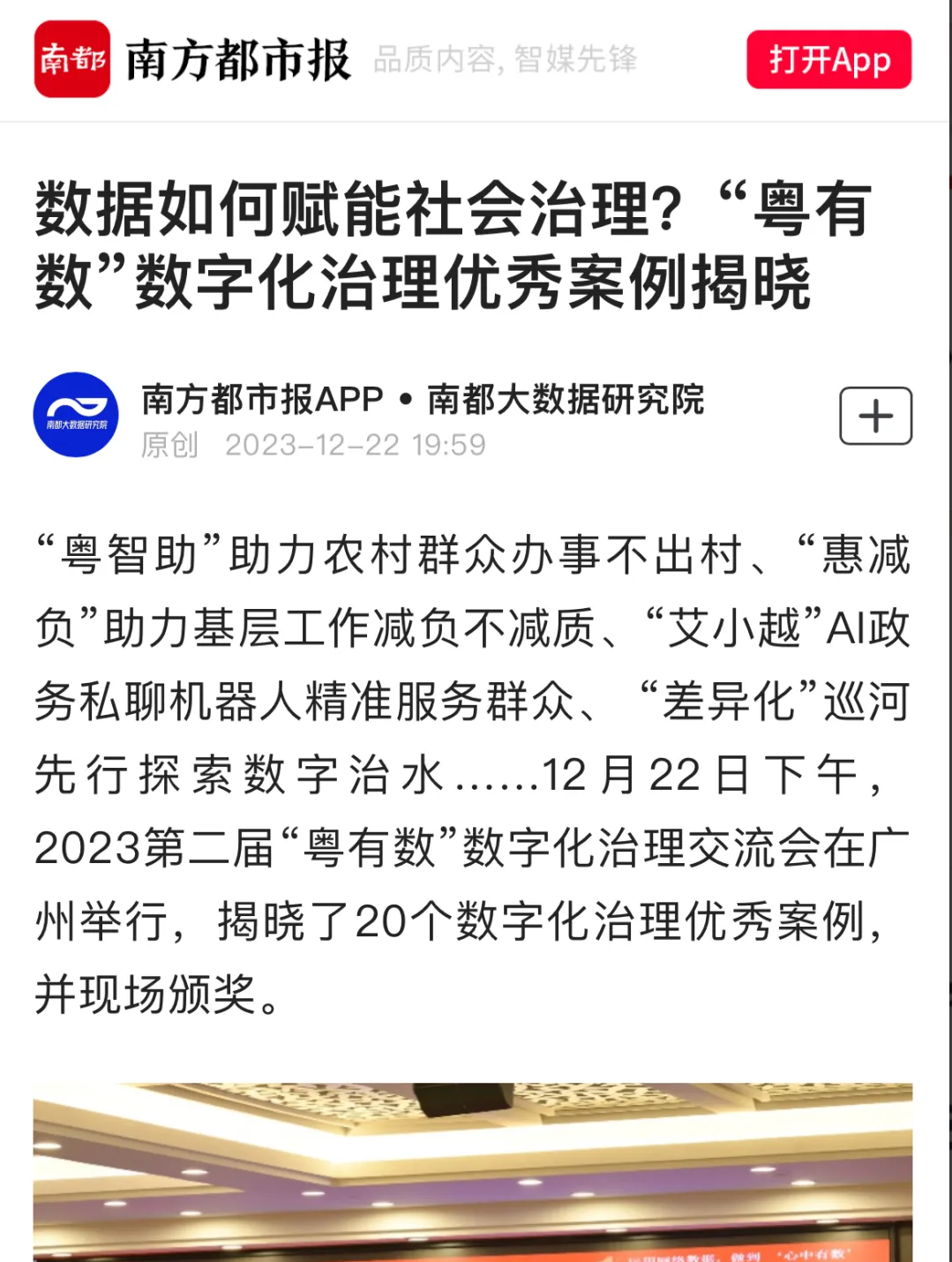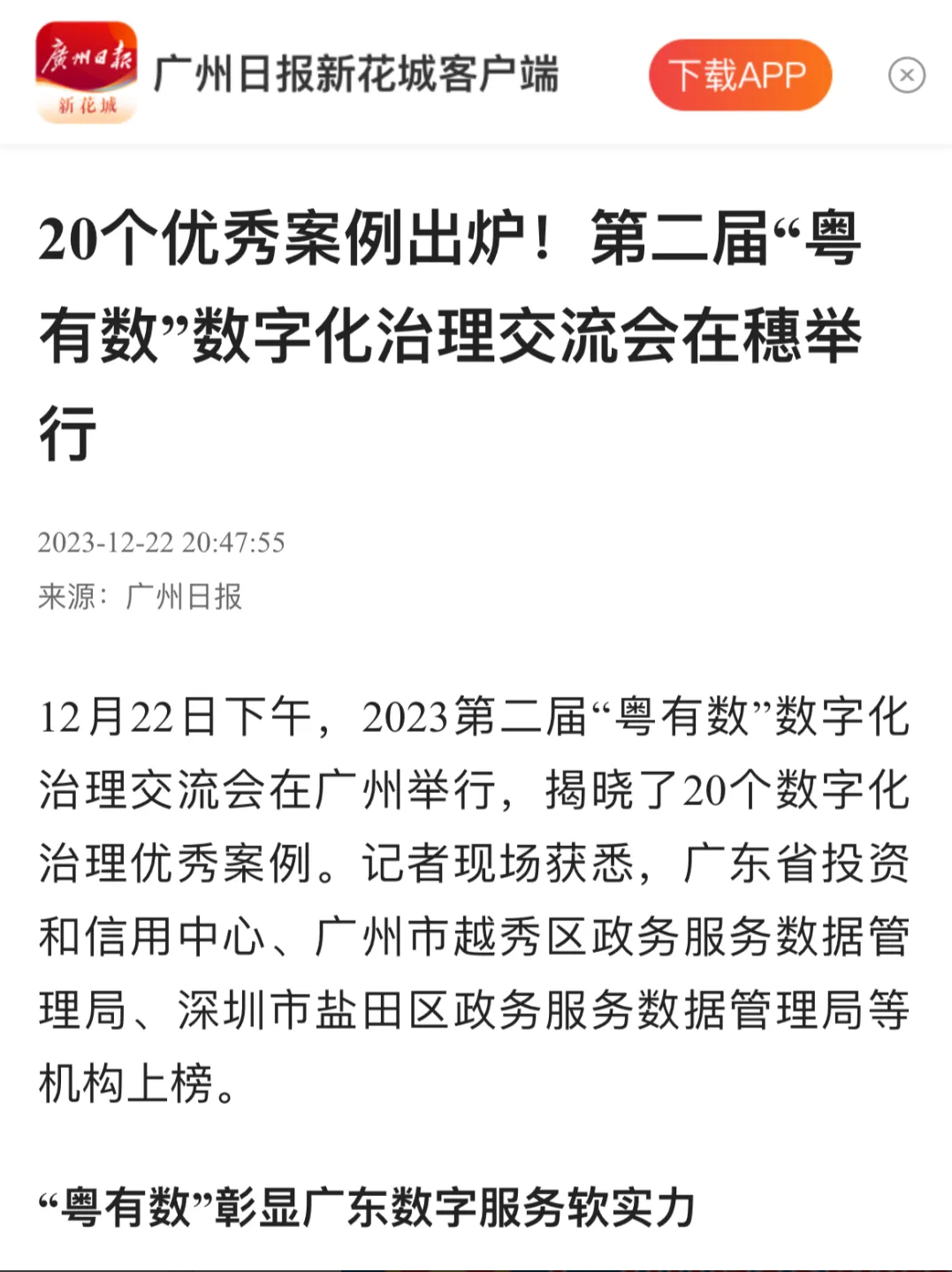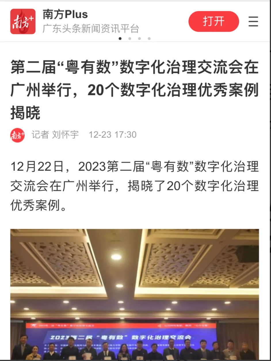 12月22日下午,2023第二届“粤有数”数字化治理交流会在广州举行,揭晓了20个数字化治理优秀案例。