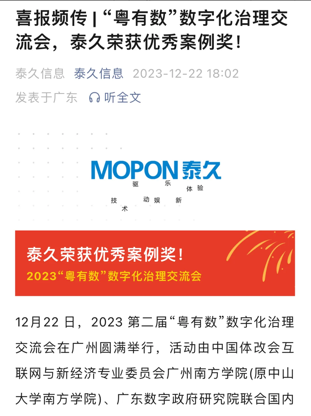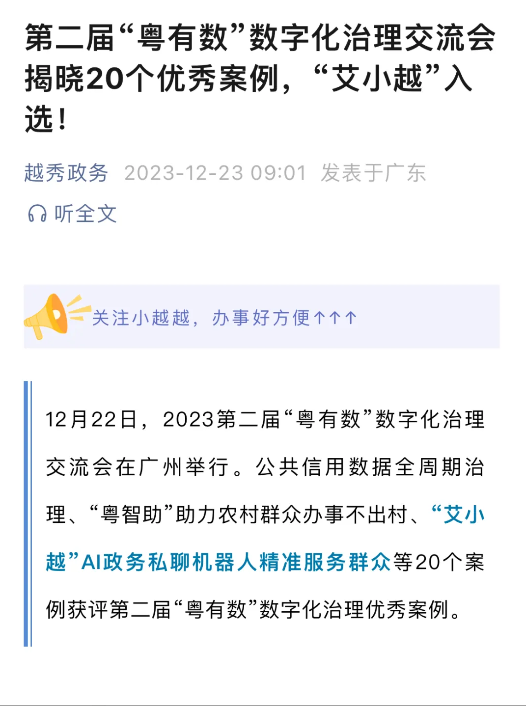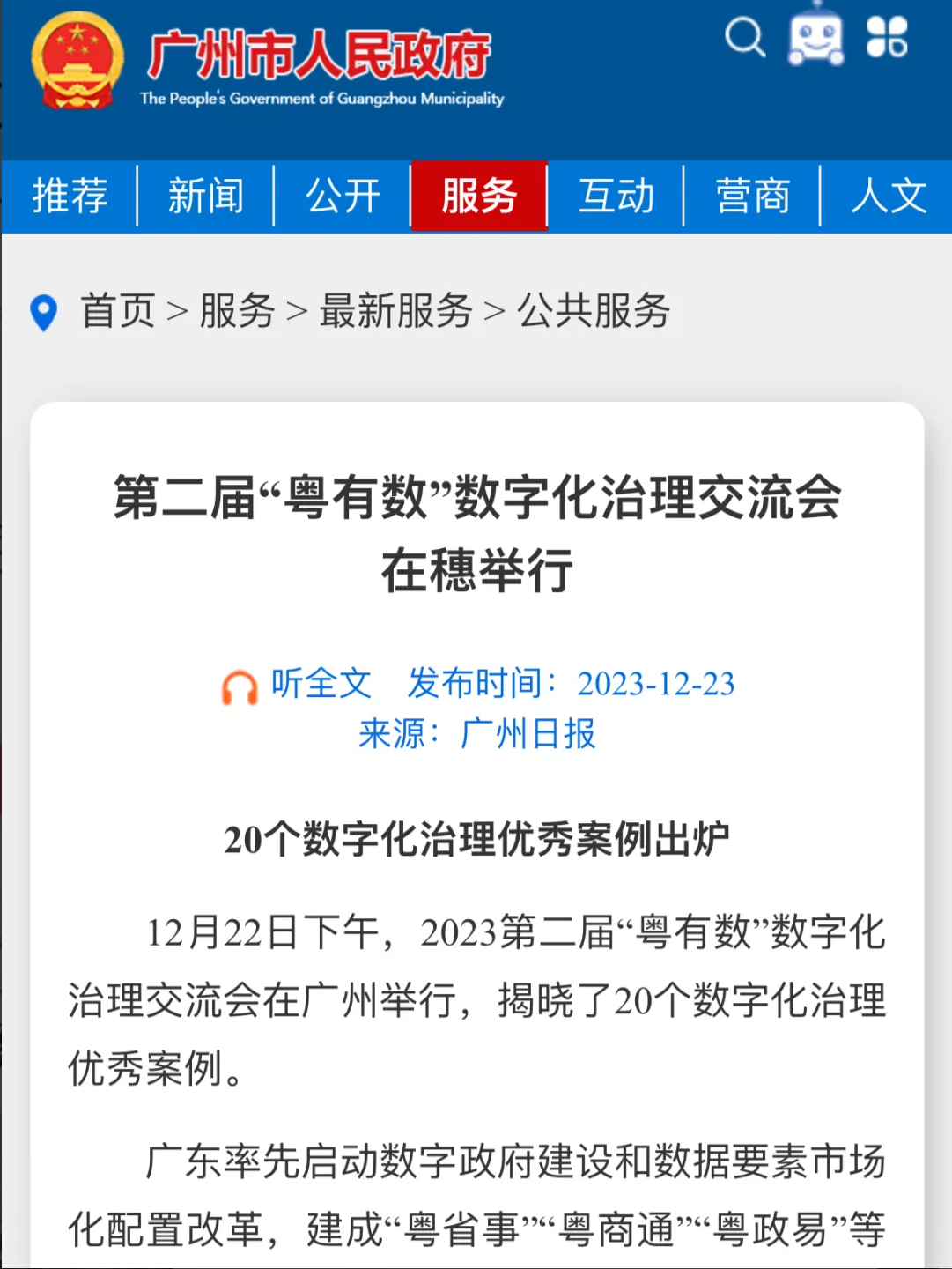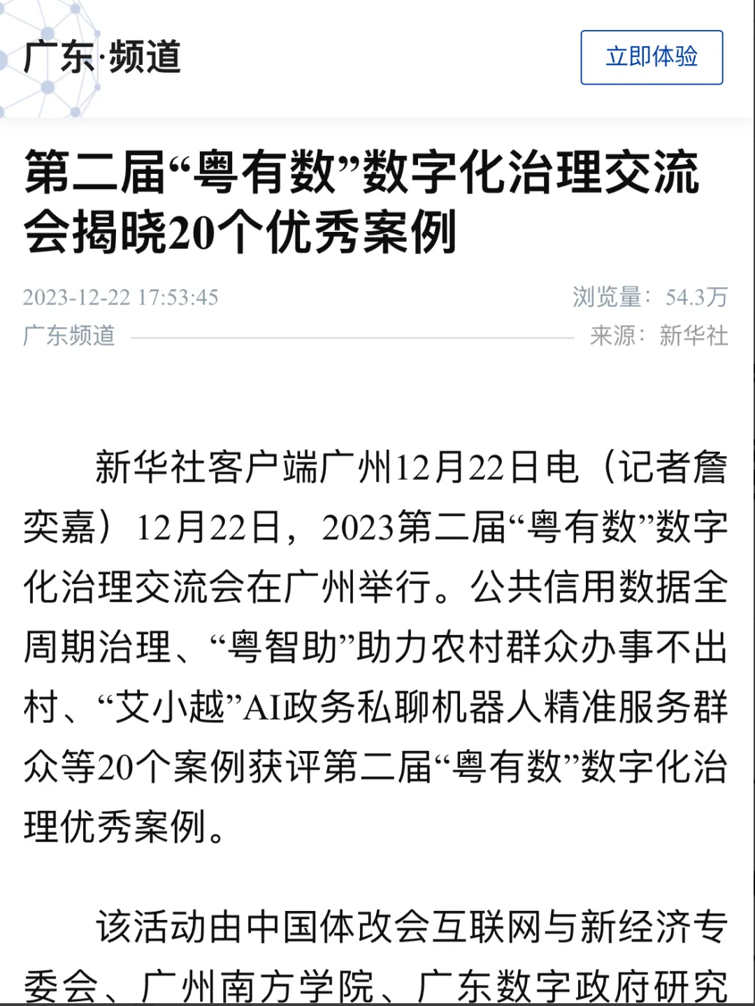 12月22日下午,2023第二届“粤有数”数字化治理交流会在广州举行,揭晓了20个数字化治理优秀案例。