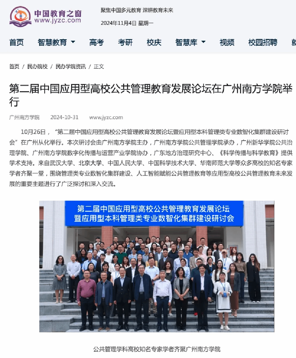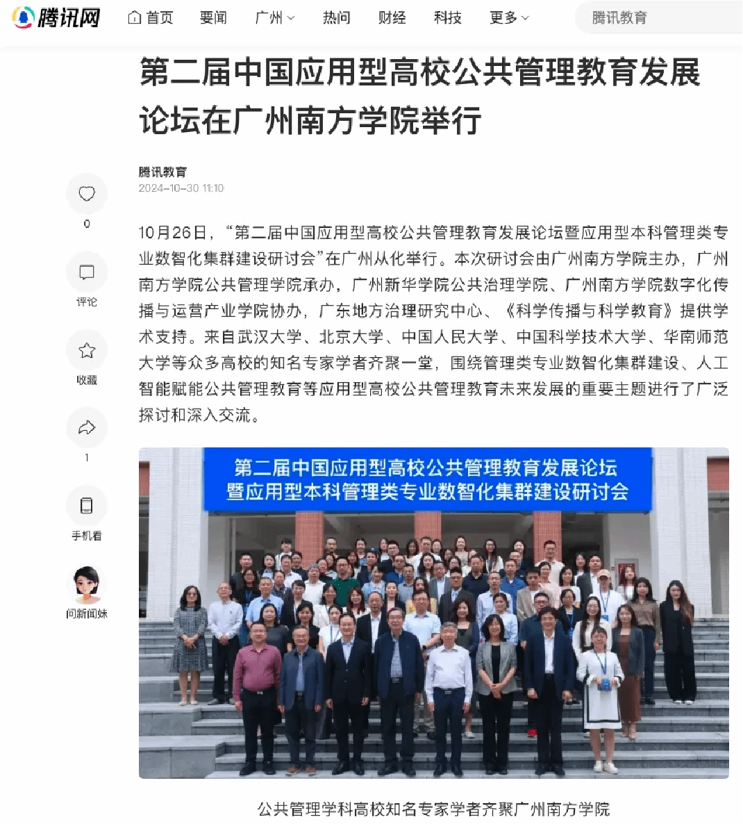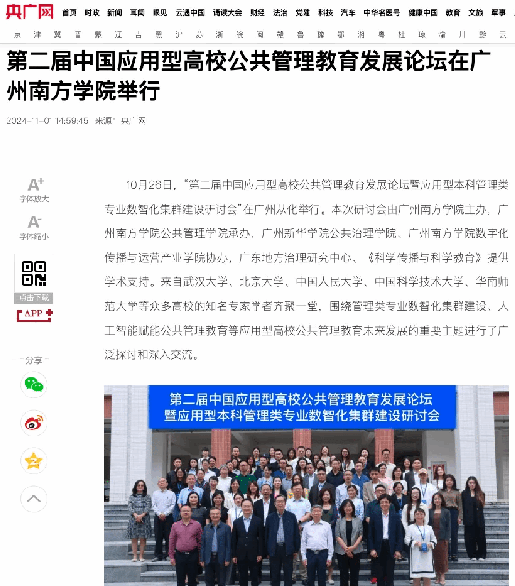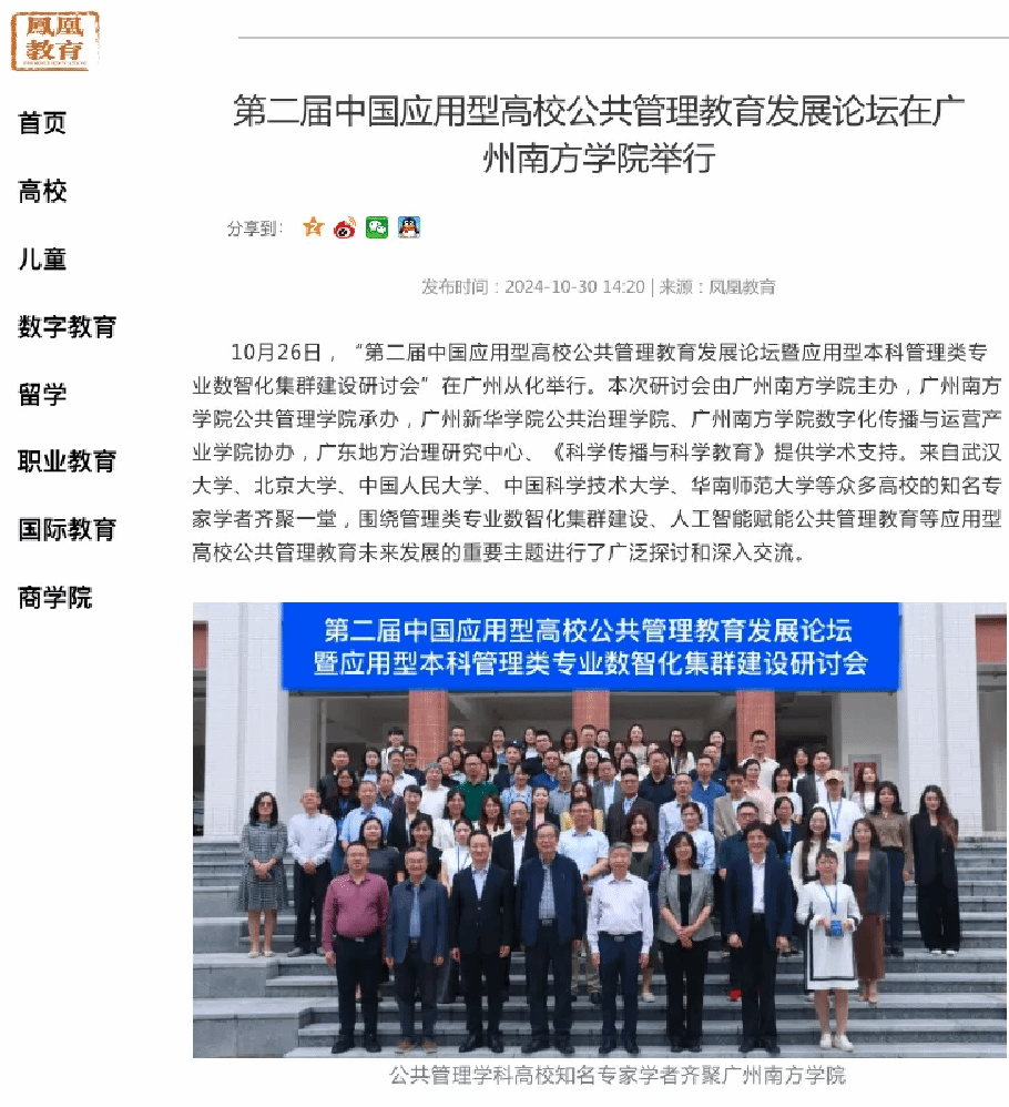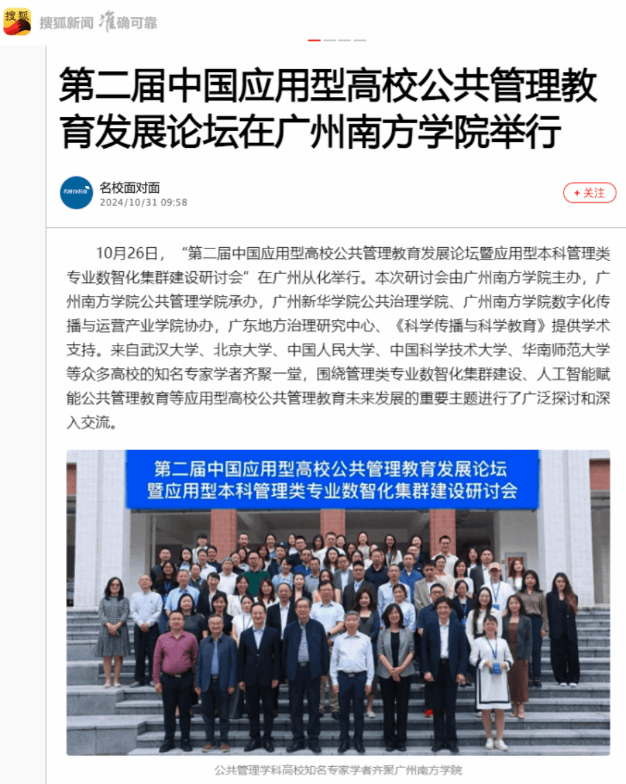 本次论坛的成功举办,不仅深化了“中国应用型高校公共管理教育发展论坛”这一学术交流平台的影响力,也为新时代公共管理专业的建设和发展提供了新思路。本次论坛吸引了专家学者的广泛参与,同时也获得了央广网、中国教育之窗、腾讯教育、凤凰教育、搜狐新闻、触电新闻等各大媒体平台的广泛关注与转载报道。