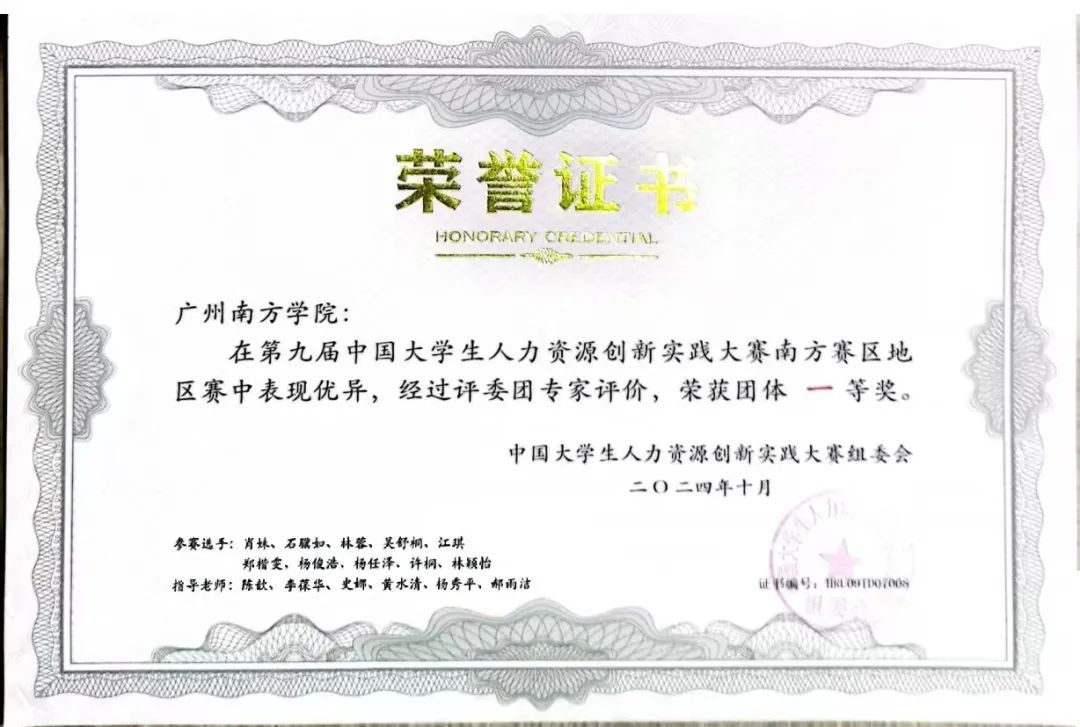 我校学子在第九届中国大学生人力资源创新实践大赛南方赛区中荣获团体一等奖,这一殊荣不仅彰显了获奖学生优秀的专业实践能力和综合素质,也充分验证了9428cn太阳集团古天乐在人才培养模式上的独特优势与显著成效。我院人力资源管理专业始终肩负着培养能够担当民族复兴大任的新时代人才的崇高使命,秉承“突出重点、强化能力、注重实践”的学科定位,致力于高端技能的培养,旨在打造一批基础扎实、富有创新思维和开拓精神,同时具备深厚人文关怀的高素质、全面发展的人力资源管理人才。此次大赛的佳绩不仅是我院人力资源管理专业学生优秀实践能力的生动体现,也是对我院该专业高水平教学能力和卓越培养模式的充分肯定