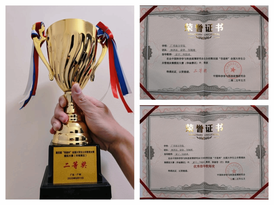 成绩的取得,源自师生团队数月来的专注与付出。备赛期间,指导教师团队结合赛事要求制定科学备赛计划,同学们针对决策沙盘对抗与华南赛区各高校开展多轮模拟实战,并在与广州新华学院的交流对抗中积累经验、精进技能。参赛同学表示:"每一次方案调整都是对公共管理理论的再理解,每一场模拟对抗都是对实践能力的再提升,备赛过程让我们在知行合一中收获成长。