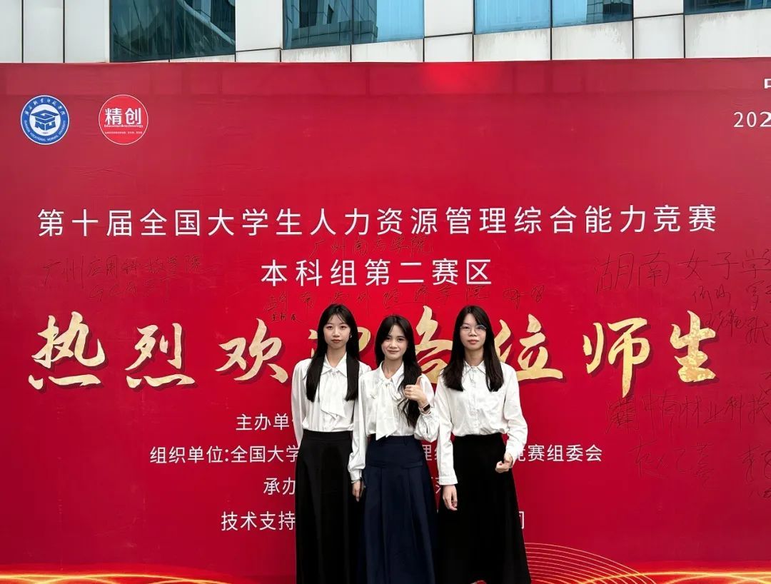 在寸晓刚、陈芬两位导师的专业引领下,另一支由莫杰妍、陈瑞君、林烨丽同学组成的队伍,历经重重挑战,依托卓越的专业能力与坚实的理论根基,成功实现突破,在第十届全国大学生人力资源管理综合能力竞赛本科组第二赛区中荣获二等奖!