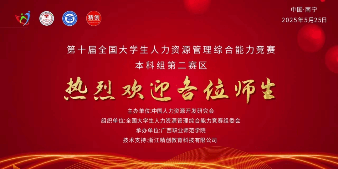 2025年5月25日,由中国人力资源开发研究会主办、广西职业师范学院承办、浙江精创教育科技有限公司技术支持的第十届全国大学生人力资源管理综合能力竞赛本科组第二赛区完美落幕。