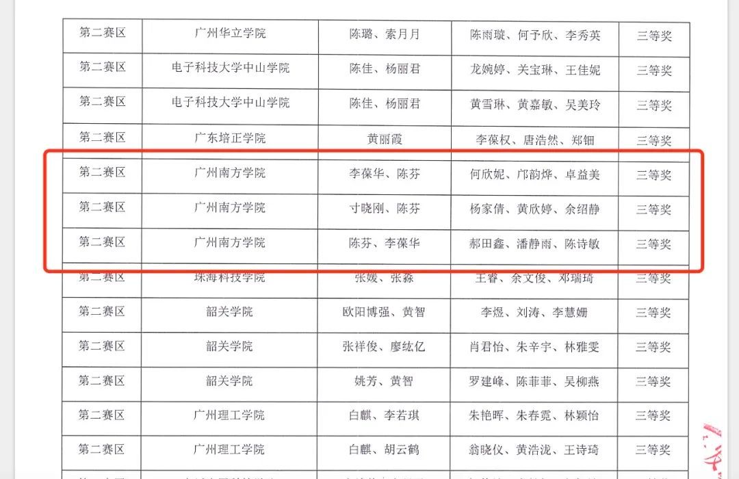 (我校代表队伍三等奖获奖名单)