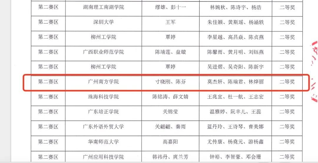 (我校代表队伍二等奖获奖名单)