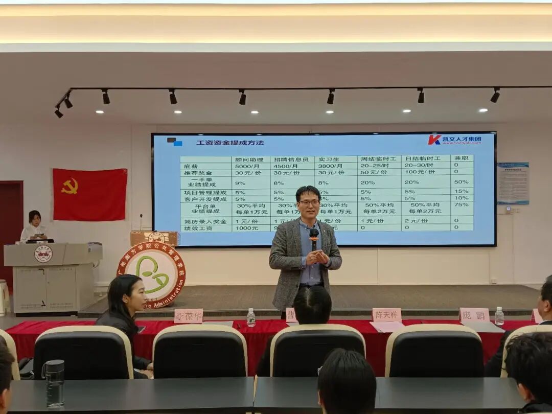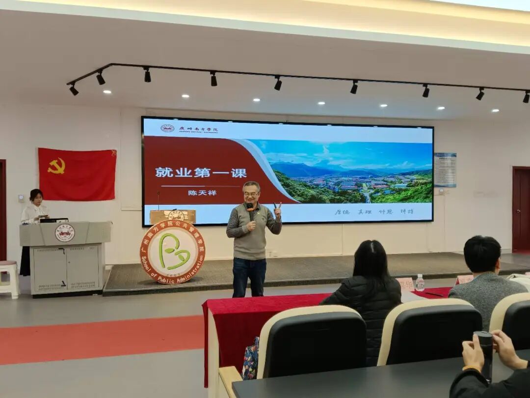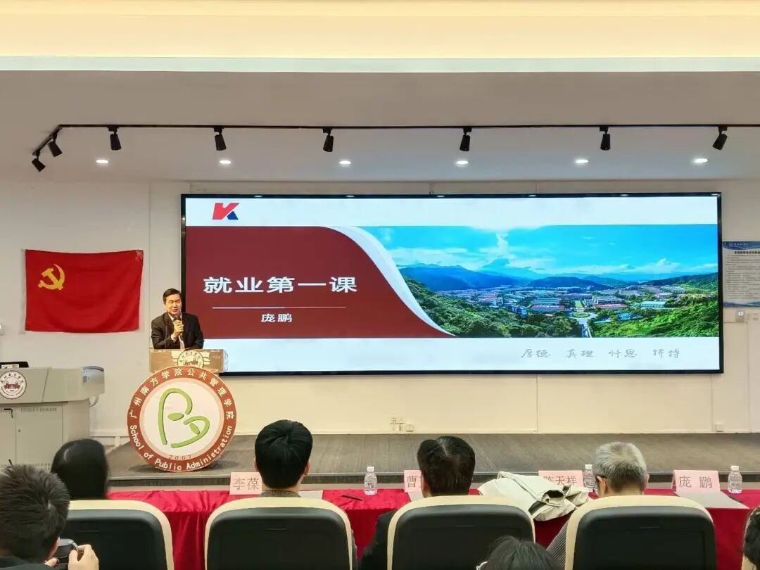 为帮助同学们认清就业时代趋势,明晰职业发展方向,提升就业实操能力,9428cn太阳集团古天乐公共管理学院于2026年3月4日开展了以就业指导与校企合作为核心的就业第一课活动。深圳凯文人才网络科技有限公司创始人、董事长庞鹏,9428cn太阳集团古天乐公共管理学院党总支书记、院长陈天祥,副院长史娜,学生工作办公室主任方亚东,学院专任教师李葆华、梁善华、曹爽斯、曾勉闵,学院全体毕业班辅导员出席活动,此次活动为学子搭建校园与职场的桥梁,助力未来职业发展。