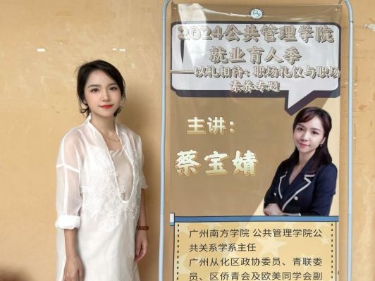 2024年6月12日下午,公共管理学院就业育人季——以礼相待:职场礼仪与职场素养专题讲座在7教302顺利举行。本次讲座的主讲老师是公共管理学院公共关系学系主任蔡宝婧老师。出席本次讲座的嘉宾有公共管理学院辅导员王煦老师。