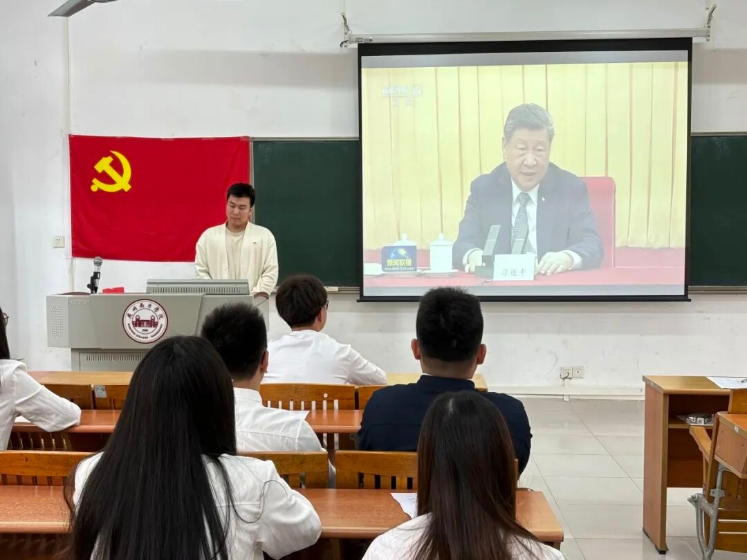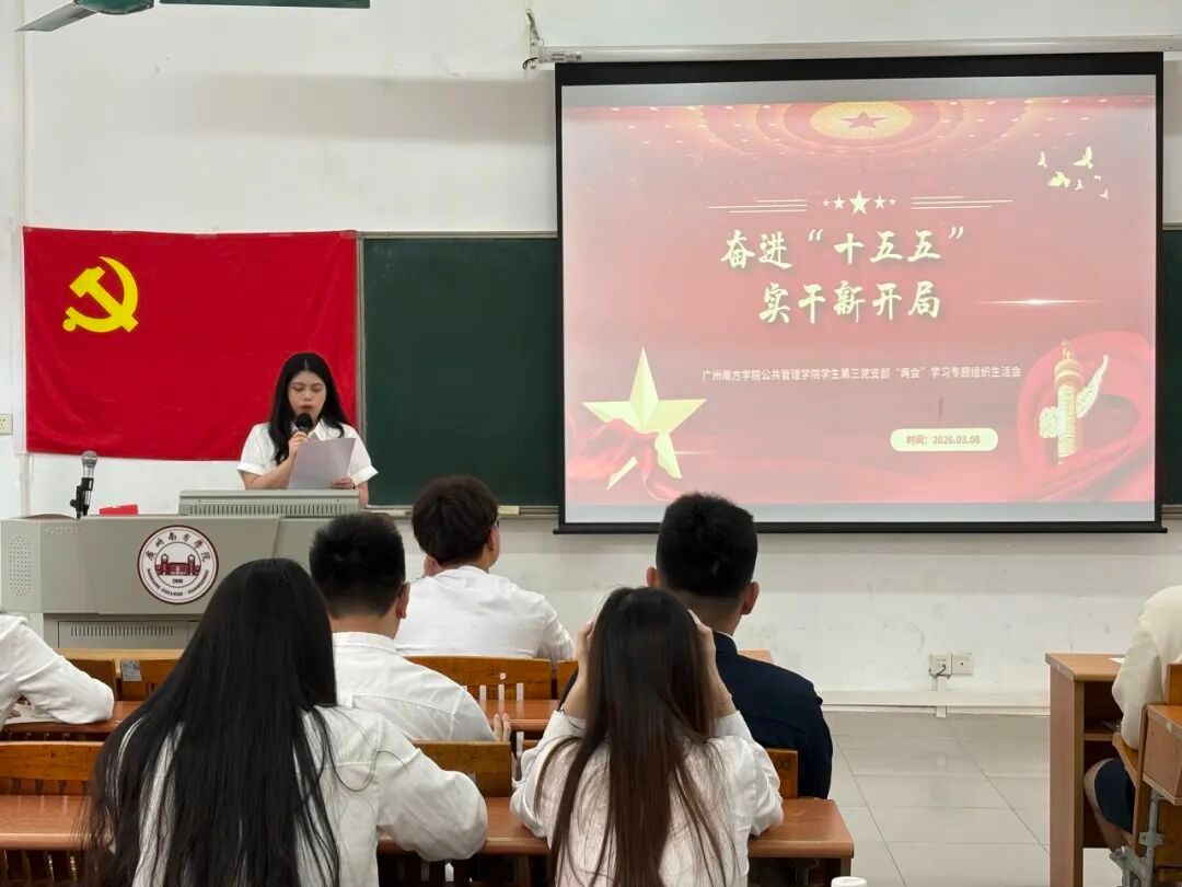 会议伊始,由支部书记莫顺政同志带领深入学习贯彻2026年全国两会精神,深度学习全国人民代表大会和中国人民政治协商会议的开会时间以及结会时间、全国人民代表大会行使的六大职权、中国人民政治协商会议的主要职能等相关内容。重点指出身为党员,需实时关注国家政策、国家会议召开的内容,并带领学生党员们共同学习“十五五”规划建议等内容,围绕坚守政治方向、把握时代大局、强化党建引领,结合学生在校的实际生活提出工作建议,引导全体党员学纪知纪,明纪守纪。