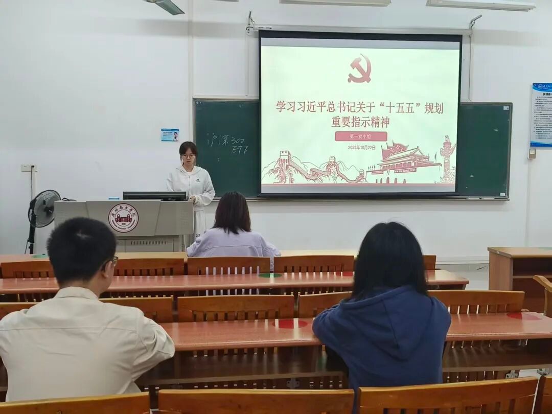 10月22日公共管理学院学生党支部第一党小组开展了以“学习习近平总书记关于‘十五五’规划重要指示精神”为主题的党小组会议。林佳莹同志在交流中提出,要坚决贯彻落实习近平总书记关于“十五五”规划的重要指示精神,系统解读六个“坚持”核心要义,引导党员将个人发展融入国家大局,立足专业在高质量发展、共同富裕中贡献力量,同时把学习党的二十届四中全会精神作为当前重要政治任务,增强“四个意识”、坚定“四个自信”、做到“两个维护”。