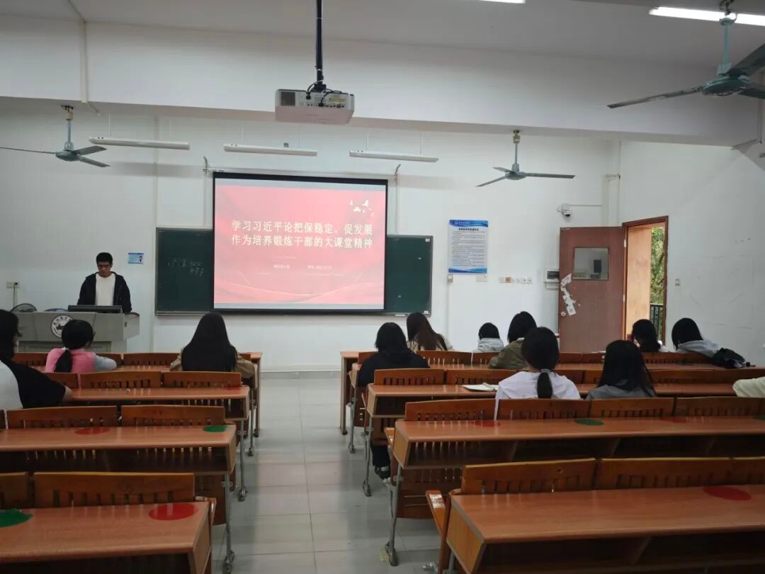 10月22日公共管理学院学生党支部第四党小组开展了以“学习习近平论把保稳定、促发展作为培养锻炼干部的大课堂精神”为主题的党小组会议。高子健同志提出,要坚决贯彻落实习近平总书记关于“把保稳定、促发展作为培养锻炼干部的大课堂”的重要精神,结合陈锶敏同志对“稳定与发展辩证关系”的解读,引导党员主动到矛盾集中、任务繁重的岗位历练,在实验室安全、调研数据优化、学业帮扶等“微治理”中提升本领,真正将“保稳定、促发展”转化为青春建功的自觉行动。