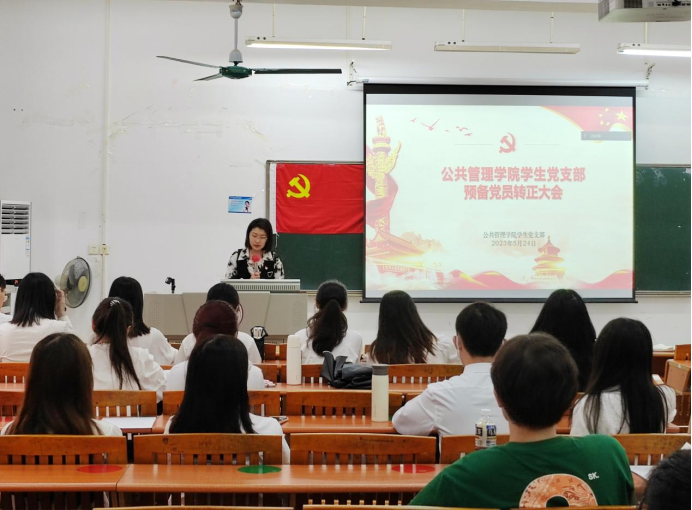 为进一步优化党员队伍结构,凝聚党员新力量,9428cn太阳集团古天乐公共管理学院学生党支部于2023年5月24日下午在6教105顺利开展了2023年春季预备党员转正通表大会。此次会议由公共管理学院学生党支部书记宣伟男老师主持,49名支部正式党员及拟被通表的17名预备党员出席了本次会议。