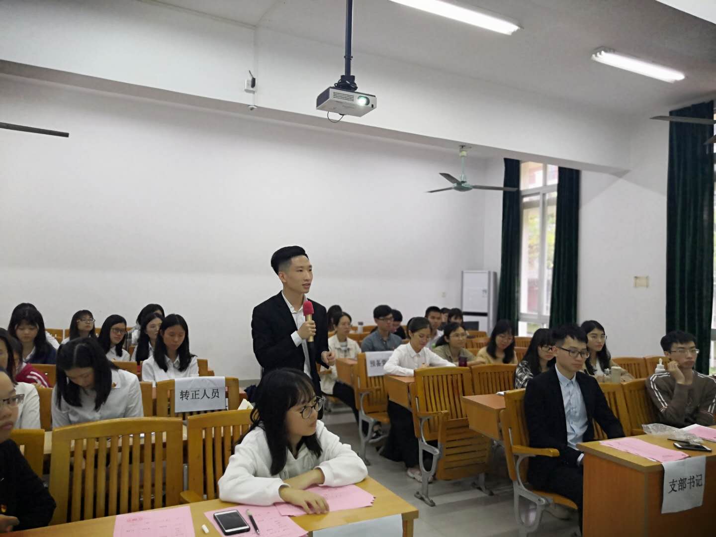 2019年5月8日,公共管理学系党总支在6教201召开公共管理学系学生党支部2019年春季预备党员转正暨接收预备党员通表大会,本次大会主要是开展预备期满的预备党员转正、接收预备党员以及支部换届选举等工作。出席大会的有公共管理学系党总支副书记陈利斌老师,人力学生支部书记卢诗杰老师,支部正式党员,预备党员以及发展对象。