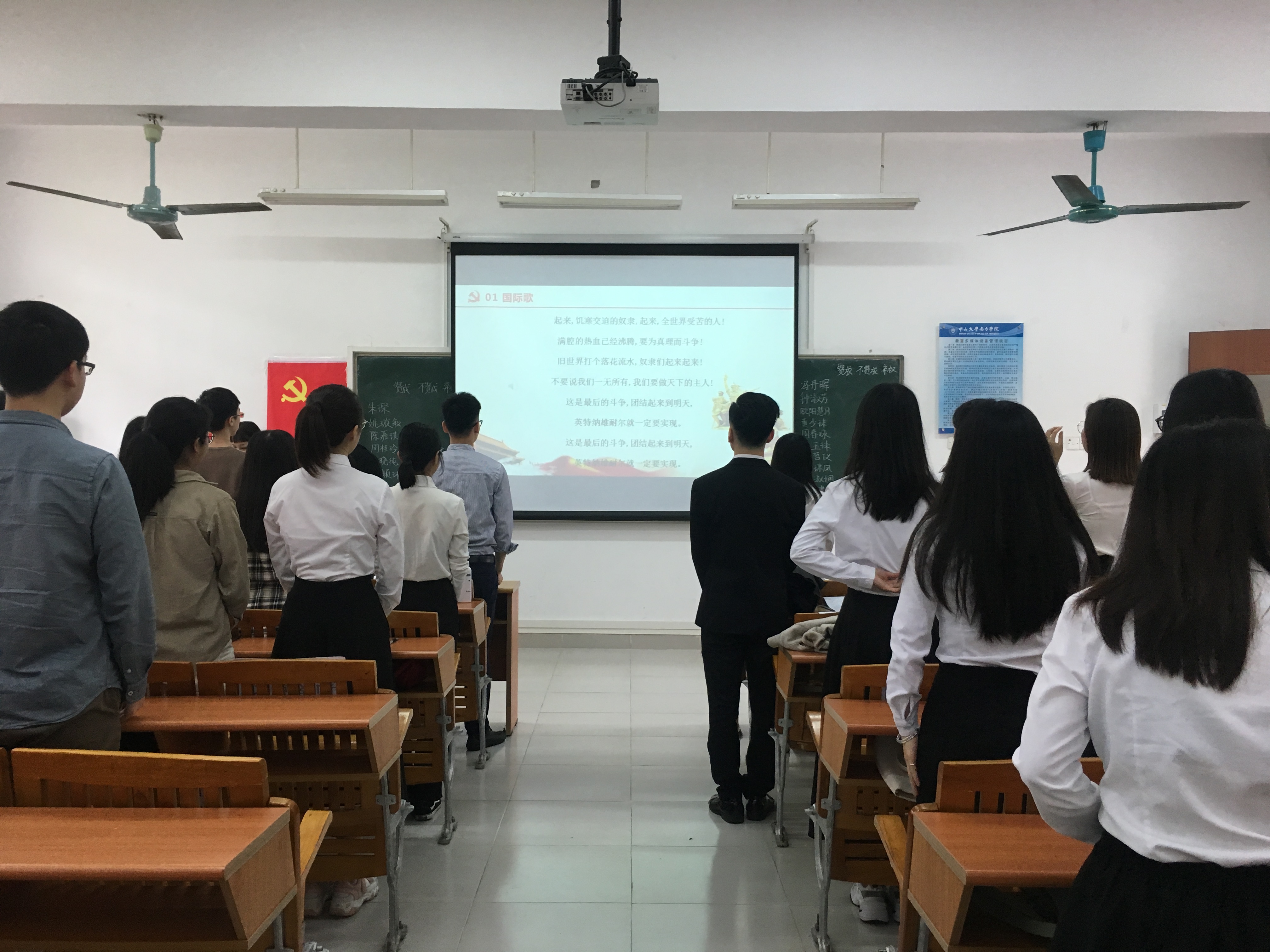 会议的开始全体同志起立,一同奏唱国际歌,慷慨激昂。紧接着,大会主持人卢诗杰老师简单介绍了本次通表大会的议程。本次大会共有五项议程: