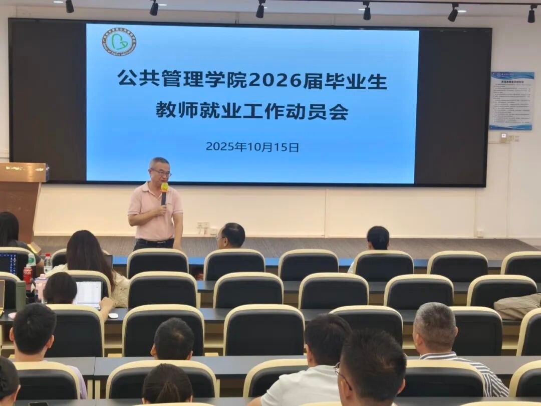 为积极响应学校关于 2026 届毕业生就业工作的决策部署,扎实推进公共管理学院就业工作有序开展,全力促进毕业生高质量充分就业,2025 年 10 月 15 日,公共管理学院顺利召开 2026 届毕业生教师就业工作动员会。陈天祥院长、欧崇亚副院长、史娜副院长、全体专职教师以及行政教辅人员齐聚一堂,共同参与此次重要会议。