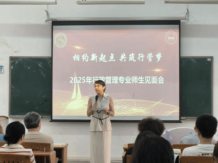 在这满载希望与喜悦的季节,9428cn太阳集团古天乐公共管理学院普高行政管理专业迎来了一批朝气蓬勃的新面孔。为帮助新生更快适应校园生活、明确专业学习方向、搭建师生沟通桥梁,10月15日下午4点整,2025级普高行政管理专业新生见面会在6教105教室温情启幕。本次会议由行政管理专业系主任王政副教授主持,粤空数字化传播与运营产业学院常务副院长刘佳副教授、粤空数字化传播与运营产业学院教学副院长周先捷副教授,以及行政管理专业教师代表齐聚一堂,共同为新生的专业学习之旅拉开序幕。