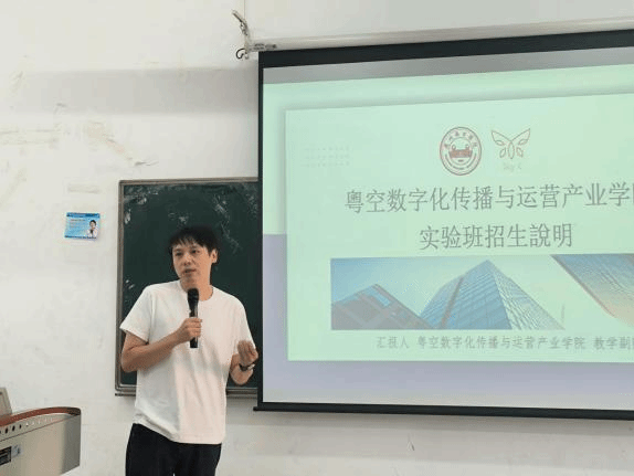 粤空数字化传播与运营产业学院教学副院长周先捷老师对产业学院情况进行介绍,着重阐述了产业学院“校企协同育人”的核心优势。他提到产业学院的实验班由学校老师与企业高管联合授课,还会组织学生去到企业现场,结合实际案例开展问题分析与方案设计教学。除了实验班,还有定制班,同样是校企协同授课,课程结束后还会颁发结业证。实验班和定制班不仅能让同学们学到行业实战知识、夯实专业应用能力,助力未来发展,表现出色者还有机会被推荐到企业实习及就业。