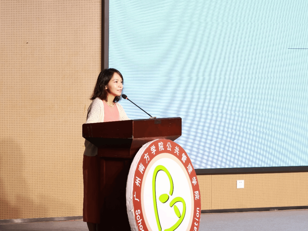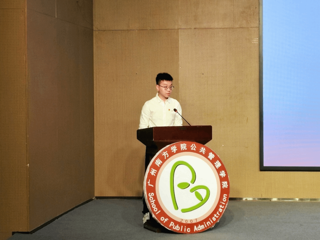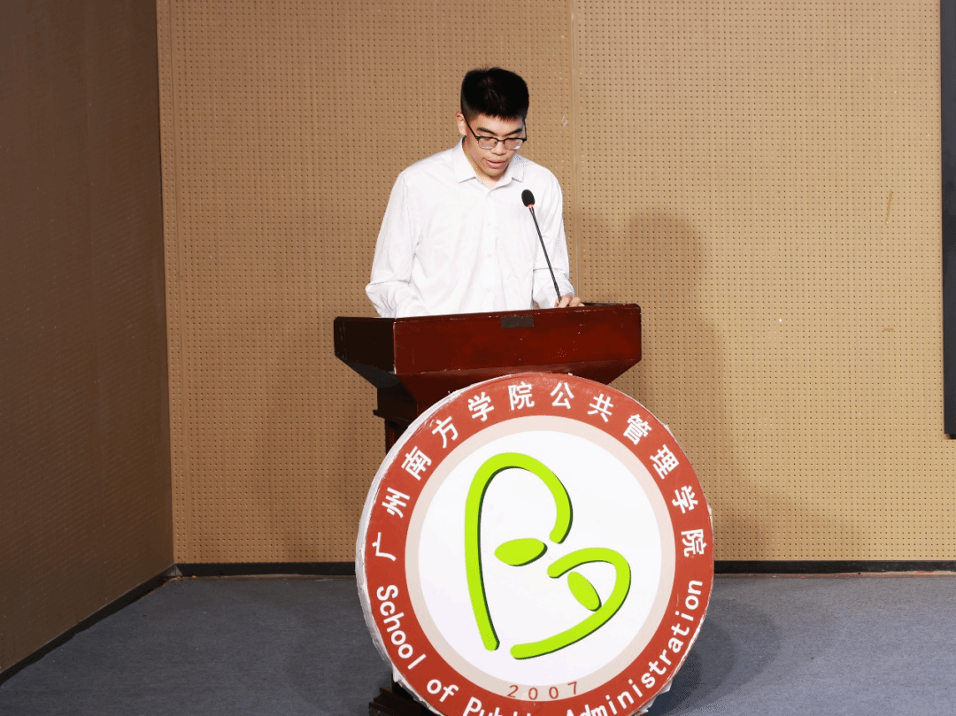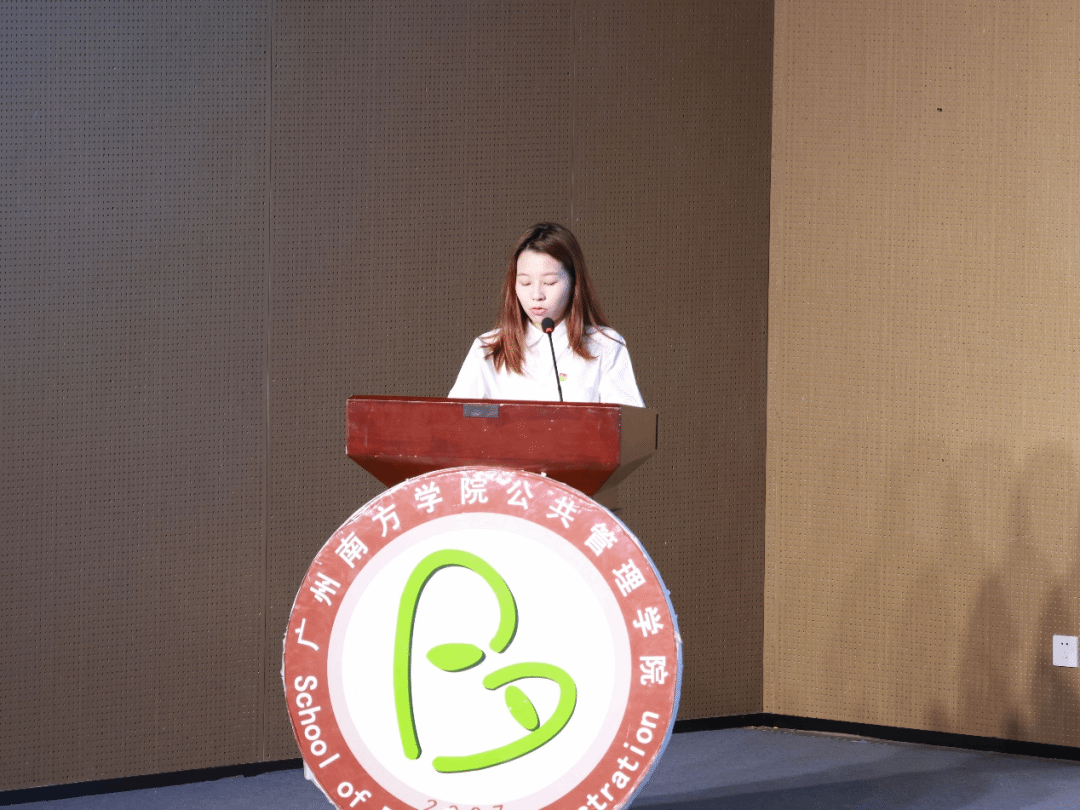 22级行政管理专升本老生代表吕吟娜同学在台上分享了自己求学故事。初入校园时,她也曾困惑于学习节奏与环境适应,在学院浓厚的育人氛围与理念指导下,她通过参与各种竞赛与活动,不仅提升了综合能力,更对专业知识的实践运用有了立体认知。吕学姐鼓励新生多参加学院活动,明确自身目标,提早规划自身发展方向,在公共管理学院书写自己的精彩。