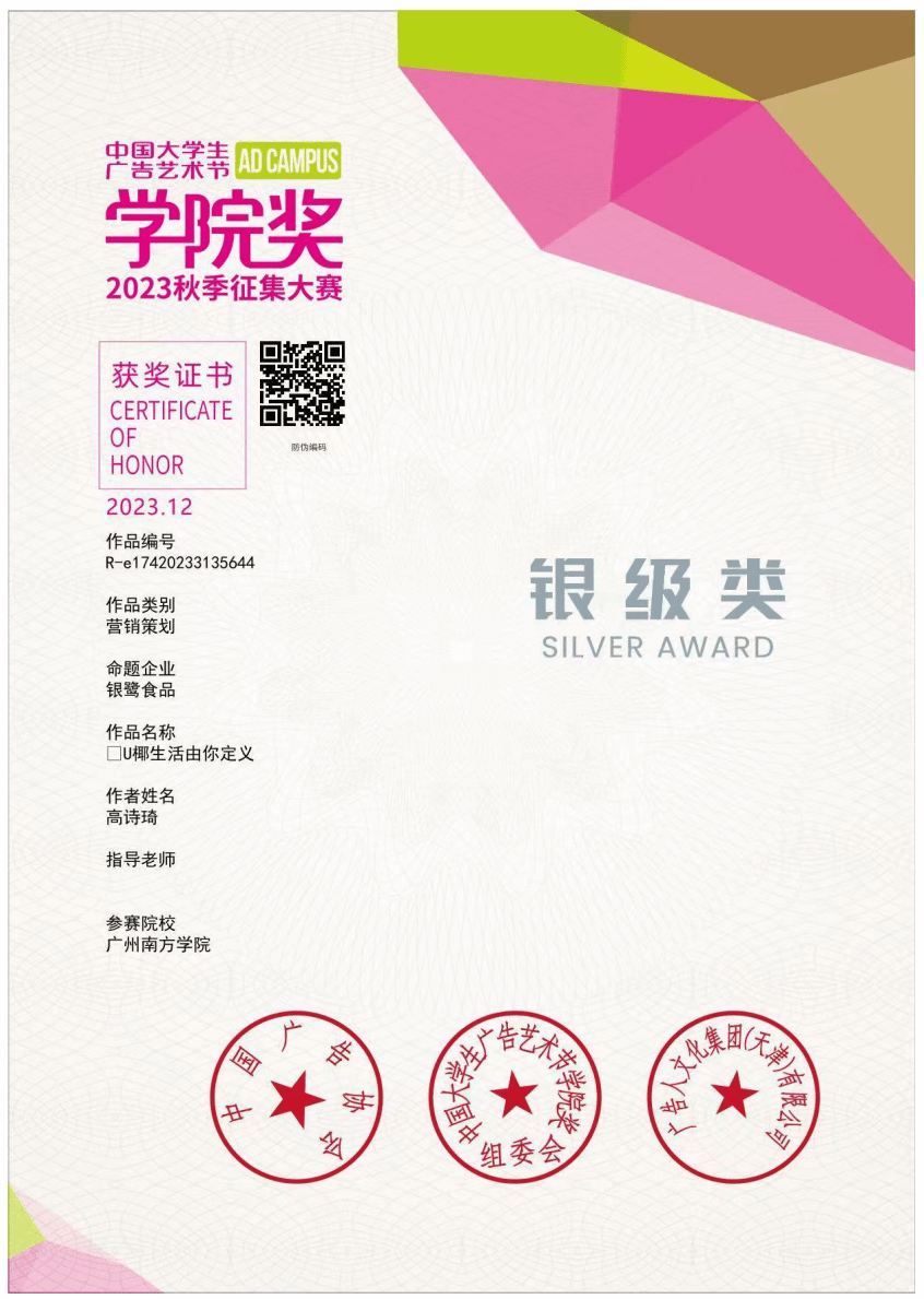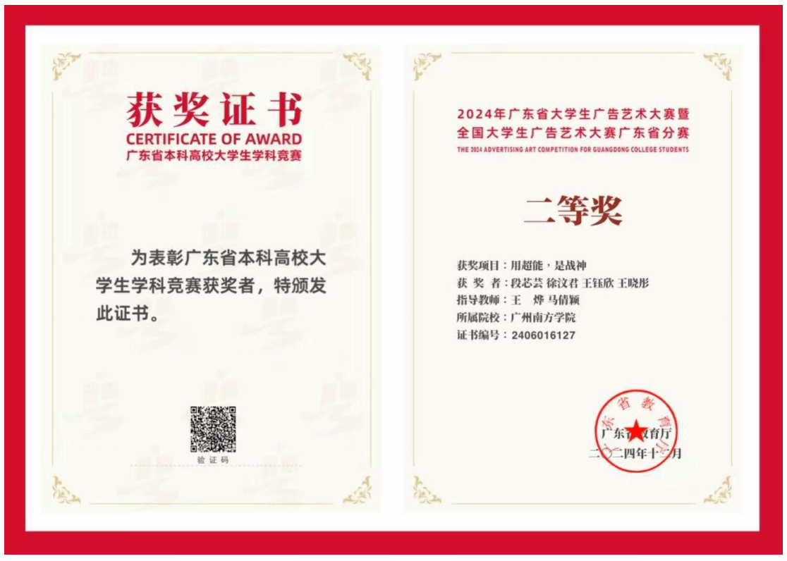 公关学子获奖证书