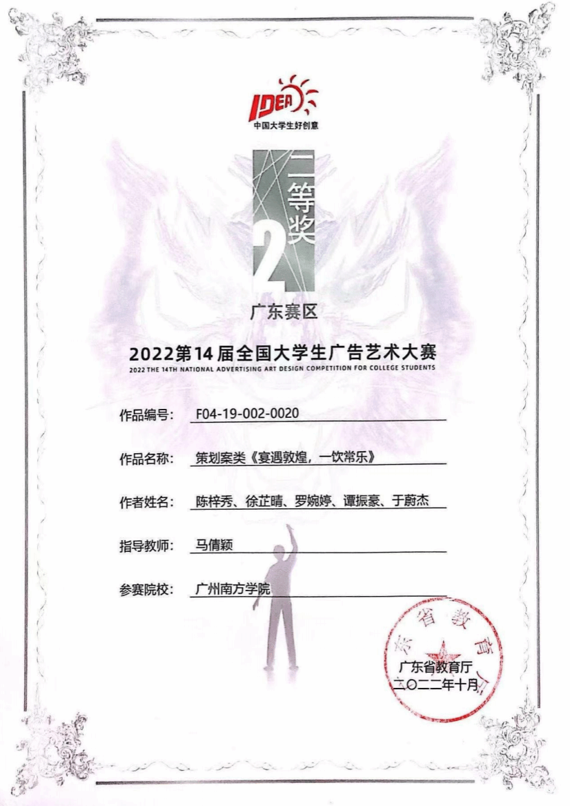 第十四届全国大学生广告艺术大赛我院获奖名单