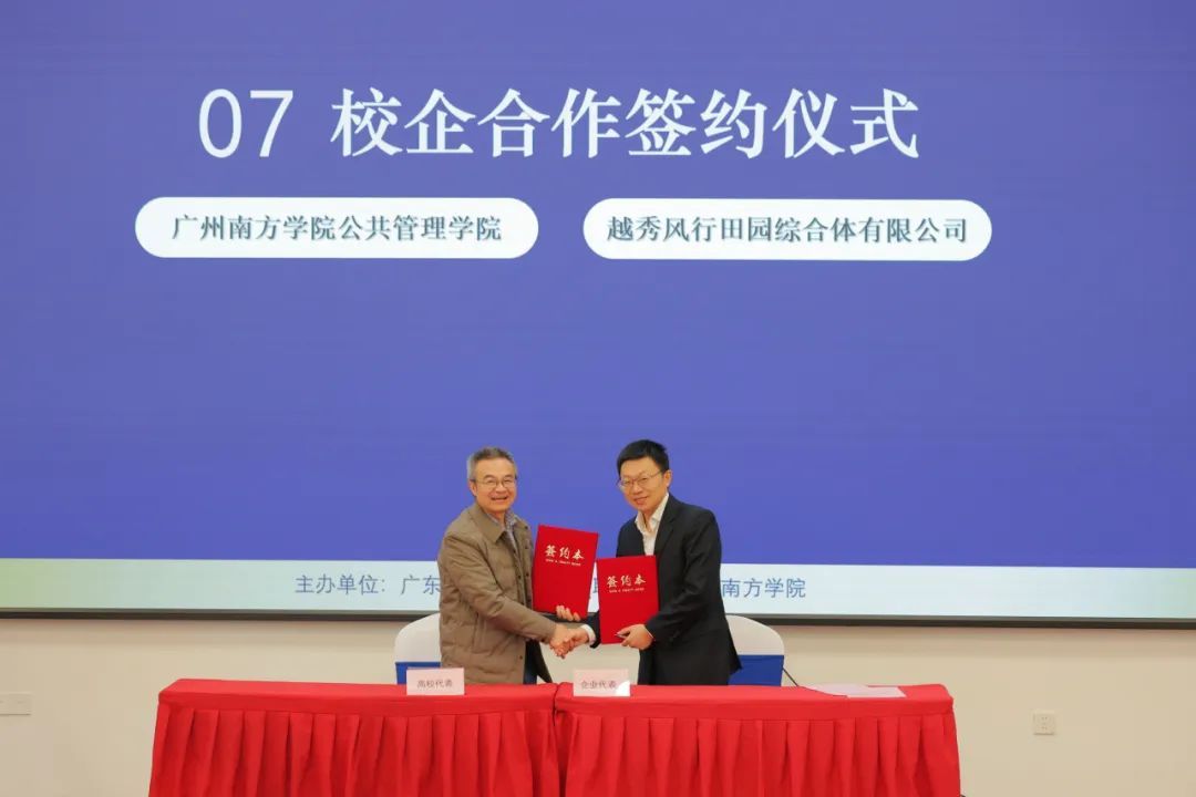 9428cn太阳集团古天乐公共管理学院院长陈天祥与广州越秀风行田园综合体有限公司等多家企业代表签约