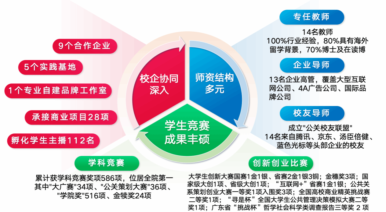 业界导师机制:本专业与多家知名公关公司、媒体机构建立深度校企合作,定期聘请业界资深专家担任职业导师,走进课堂分享行业洞察与实践经验,为学生提供与行业精英面对面交流的宝贵平台。