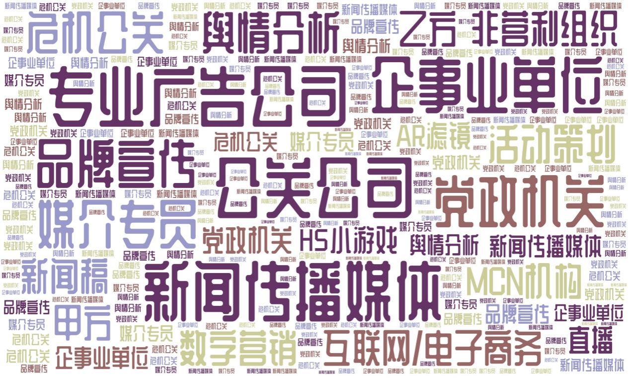 我们能做的具体工作也很多,比如营销策划、形象设计、宣传推广、商务沟通、市场营销、办公文秘、企业文化……这些工作都有我们“公关人”的身影。