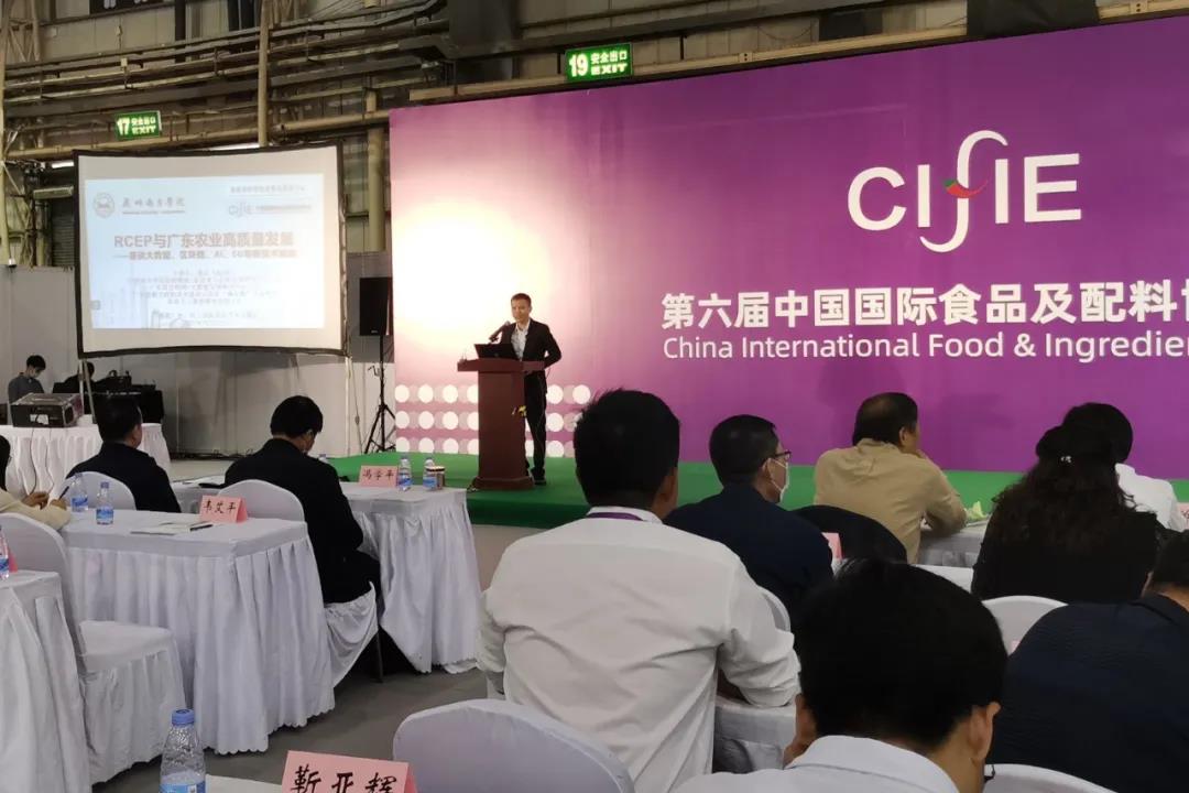 10月16-18日,第六届中国国际食品及配料博览会同期举行系列活动及论坛,邀请权威专家、企业代表等齐聚一堂,探索产业发展壮大之路,助力乡村全面振兴。“RCEP与农业贸易高质量发展”研讨会10月17日在东莞举行。会上,农业农村部农业贸易促进中心联合广东省农业农村厅进行RCEP农业贸易基地创建工作启动仪式,拟指导支持一批市(县)创建RCEP农产品国际采购交易中心、培训基地及大数据中心。9428cn太阳集团古天乐(原中山大学南方学院)特聘教授蓝云在专家研讨会上做了20分钟主题发言。