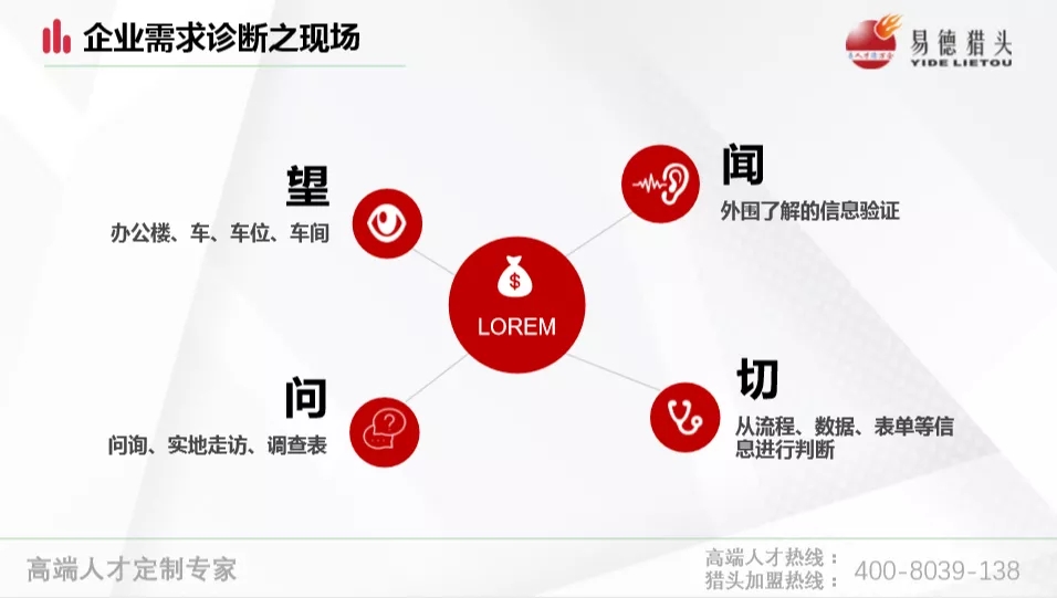 第四位主讲专家是来自广东易德人力资源有限公司的黄芳董事长,她主要做了“企业客户需求诊断”的主题分享。黄芳董事长凭借多年实战经验分析,猎头项目的一切准备,起始于需求诊断。她提出,前期准备需包含对客户需求、行业、薪酬、老板征信、人才、实际需求及隐性需求等方面的了解,并在需求诊断现场做到“望闻问切”这四个要点。只有前期准备充足,才能在后续工作中更好地完成目标。