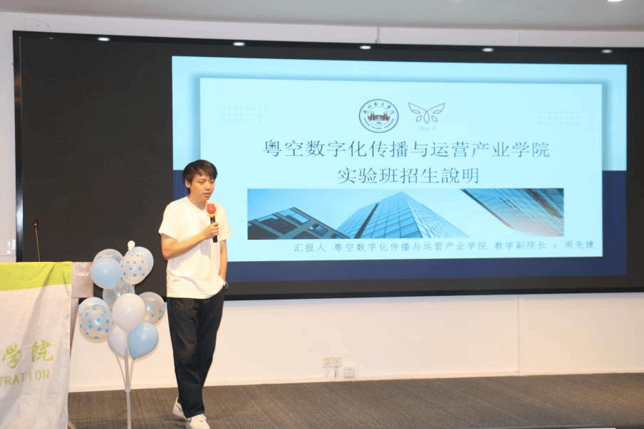 作为成人礼的重要环节,周先捷老师为粤空数字化传播与运营产业学院实验班做招生宣讲,给新生带来了优质的成长赋能选择。该学院由公共管理学院学院与公共管理学院校友联合打造,合作企业粤空无限国际贸易有限公司年营业额超百亿,实力雄厚。