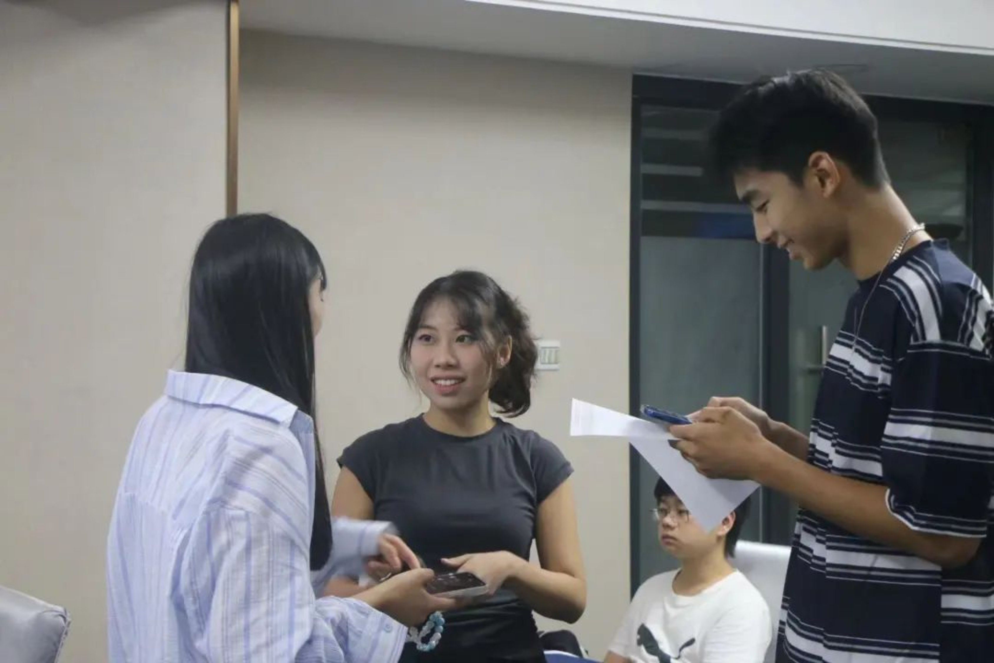 项目主要负责人Chris作为本次讲解人,他强调:“抖音平台对话规则、直播内容以及直播间的搭建这三大板块都是我们培训的重点内容,这切身关系到同学们以后的正式直播。”并表示同学们在结营后将会得到实习证明与校方证书。随后,Chris老师带领同学们参观了白热化阶段的直播间,让同学们对直播流程、后台运营等方面进行了解。