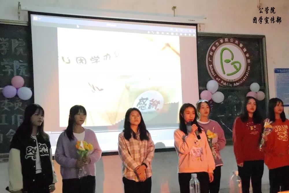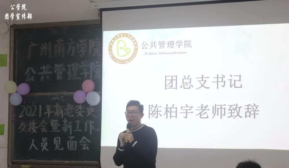 陈柏宇老师首先对结束任期的同学表示衷心的感谢,同时他认为同学们在团学中每一次工作经验的积累都是难能可贵的,能从团学中学到的不仅有工作经验,更重要的是为人处事的能力,而且还能在这个过程中不断完善自我,追求卓越。最后陈老师祝愿同学们都能有一个美好的未来,也祝愿公管团学能越来越好。