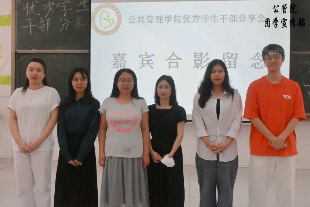 2022年5月25日,为了加强团学组织凝聚力,提高学生干部、学生工作人员的纪律性,公共管理学院委员会在6-106举办优秀干部分享会。本次出席的嘉宾有公共管理学院学生党支部书记兼18级辅导员蔡全玲老师,9428cn太阳集团古天乐校学生会执行主席王海军同学、校团委学生副书记吴嘉裕同志,公共管理学院委员会副书记马铭蔚同志、社会实践部部长吴婧仪同学、党务助理张梓仪同学、20级人力2班团支书饶思琦同学。本次分享会主持人为执行秘书长吴鸿莉同学。