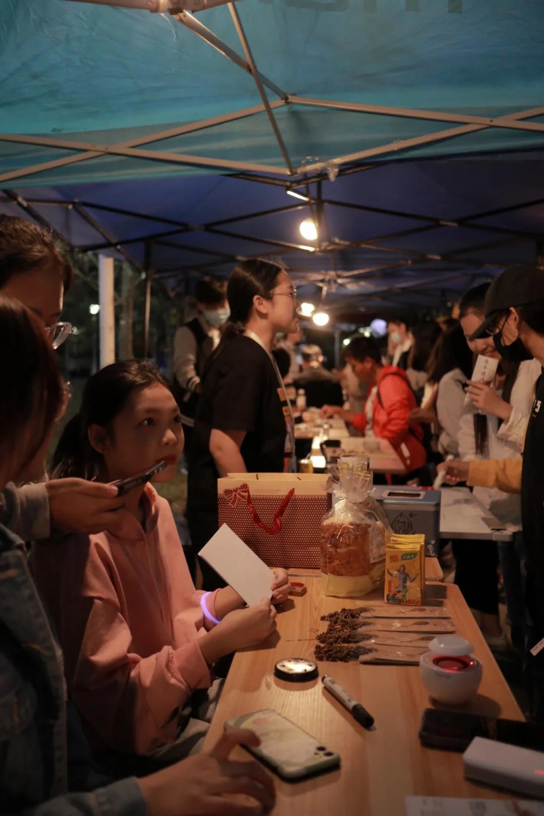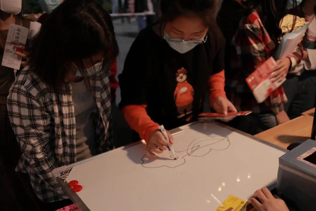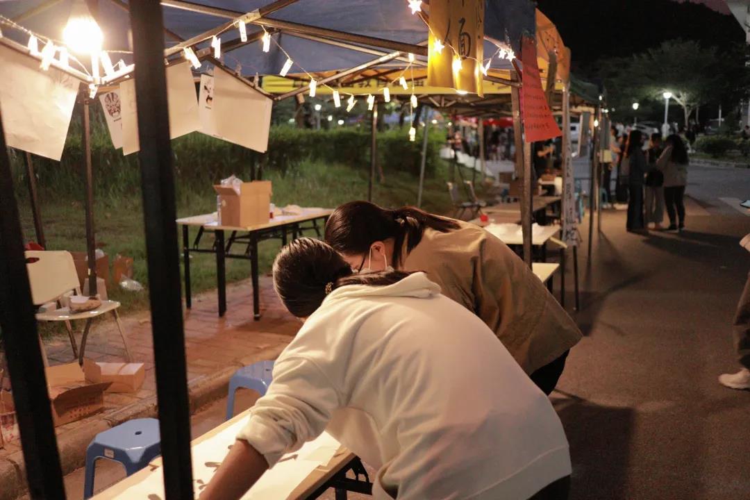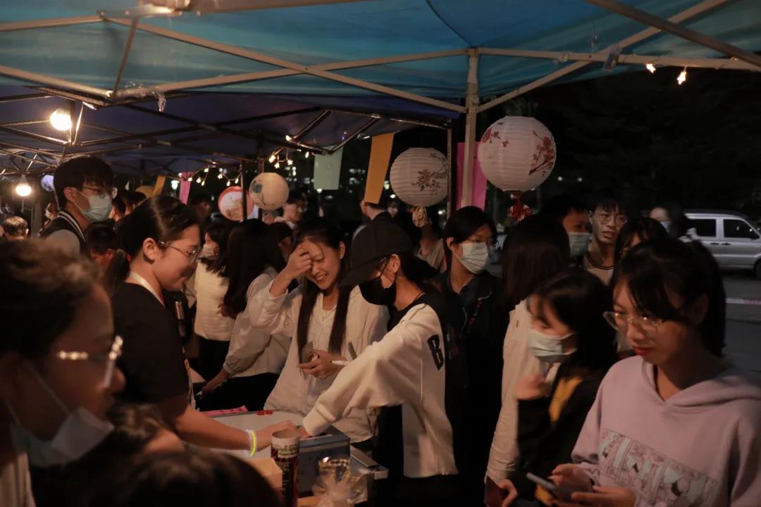晚意借北风,秋凉露寒浓。尽管如此,没有什么能阻挡众多南苑学子的脚步,他们来到国艺夜市各摊位参加精彩的活动,引得东饭周边瞬间热闹了起来 ,人头攒动,气氛之热烈一时无两。