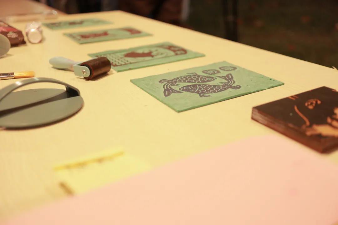除了上面讲到的摊位,还有版画、纂刻、剪纸、棋艺等摊位都受广大师生的喜爱,每个摊位前都人头攒动。