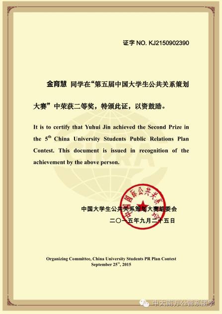 2013年度“五四”评优中,获得中山大学南方学院“优秀共青团员”;