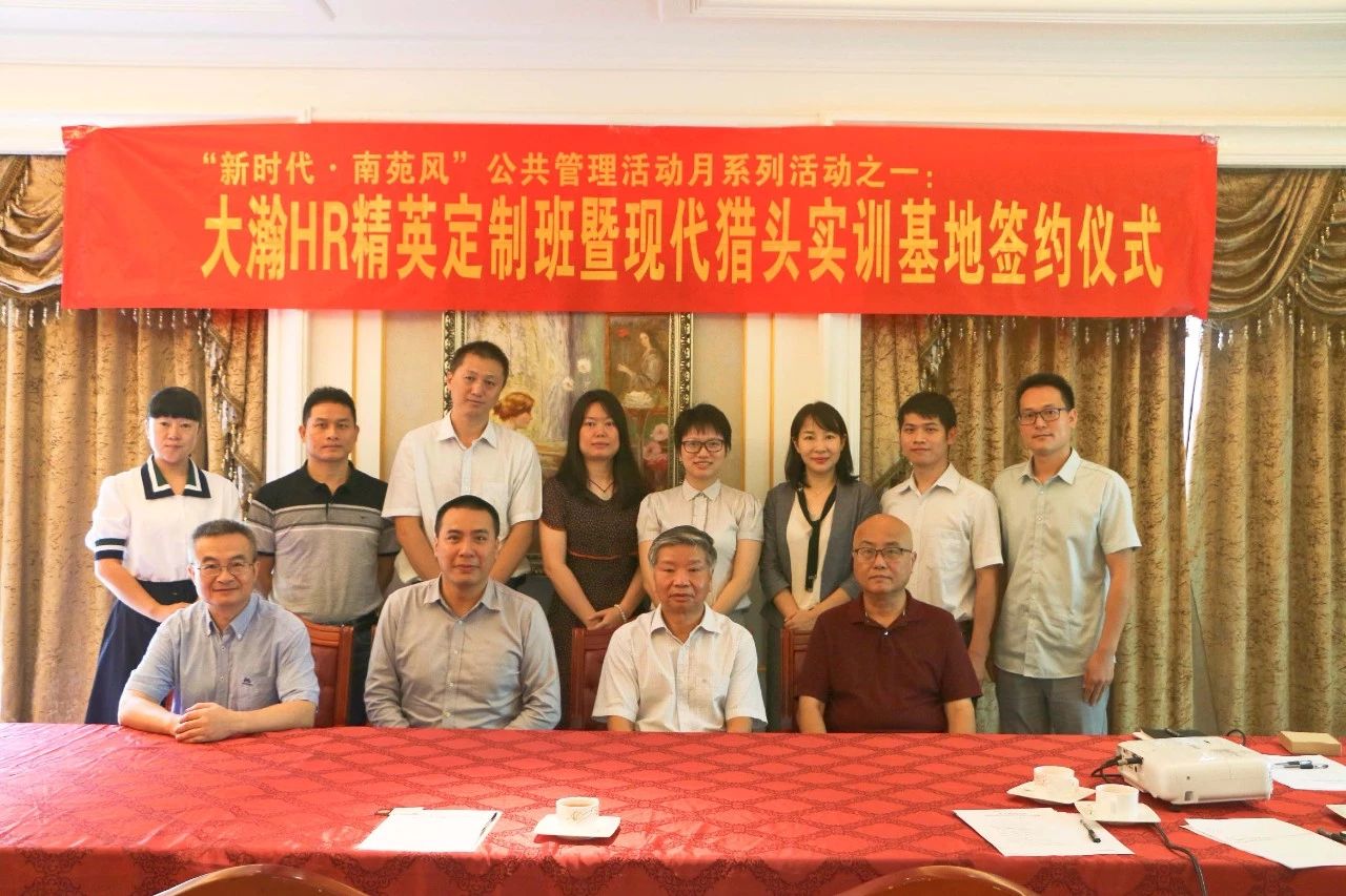 大瀚HR精英定制班以及现代猎头实训基地将会利用多种形式,定制学习,建立让学生更贴近企业实际运营的学习环境,培养符合行业发展和产业需求的优秀专业人才。本次大瀚HR精英定制班以及现代猎头实训基地签约仪式属“新时代?南苑风”公共管理活动月系列活动之一,符合我校以师生发展为本的原则,旨在持续推进学校转型发展改革,提升教育教学质量,促进我校教育和产业的新型联动发展,形成独特的广东高等教育应用型人才培养模式。