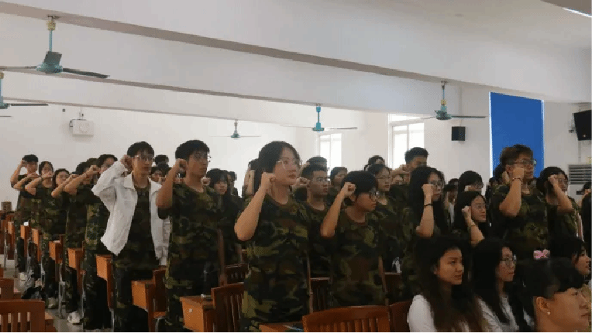 6.2022级专升本新生、2024级普高新生们在主持人带领下宣誓