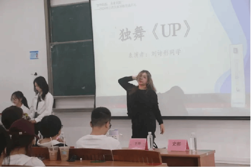 新生刘诗彤同学带来了一段青春洋溢的独舞表演《UP》,那些利落的动作里展现的是不仅是自信逐梦的姿态,还有对未来大学生活的无限期许,深刻感染在场的每一位观众。