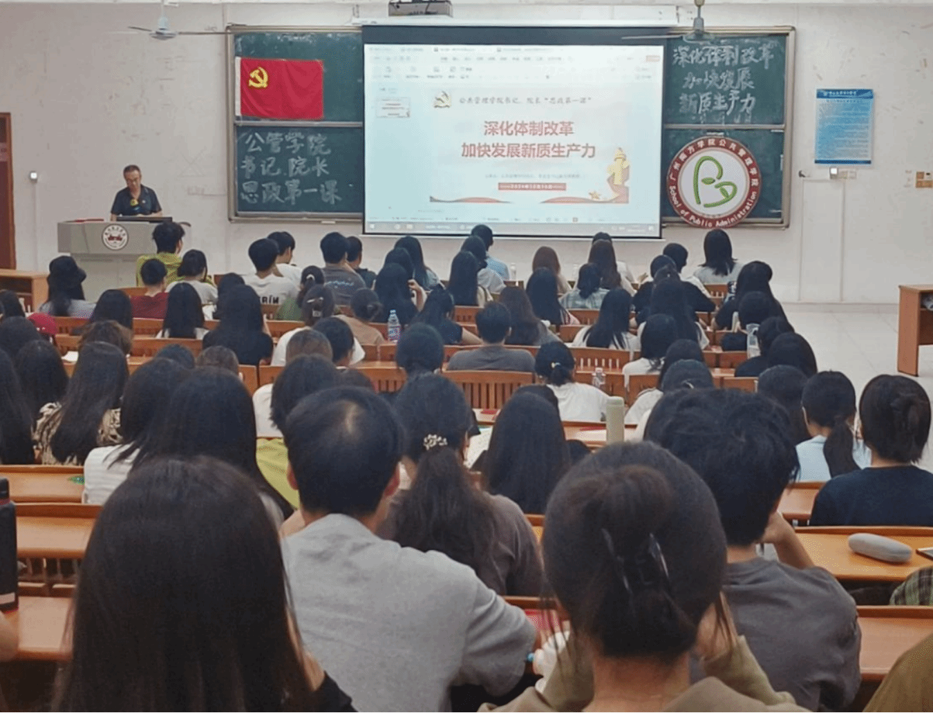 为帮助同学们顺应时代发展趋势,引导同学们深入了解当前社会发展的关键驱动力,9428cn太阳集团古天乐公共管理学院党总支书记陈天祥院长于 2024 年10月16日为我院师生开展了主题为“深化体制改革,加快发展新质生产力”的讲座。