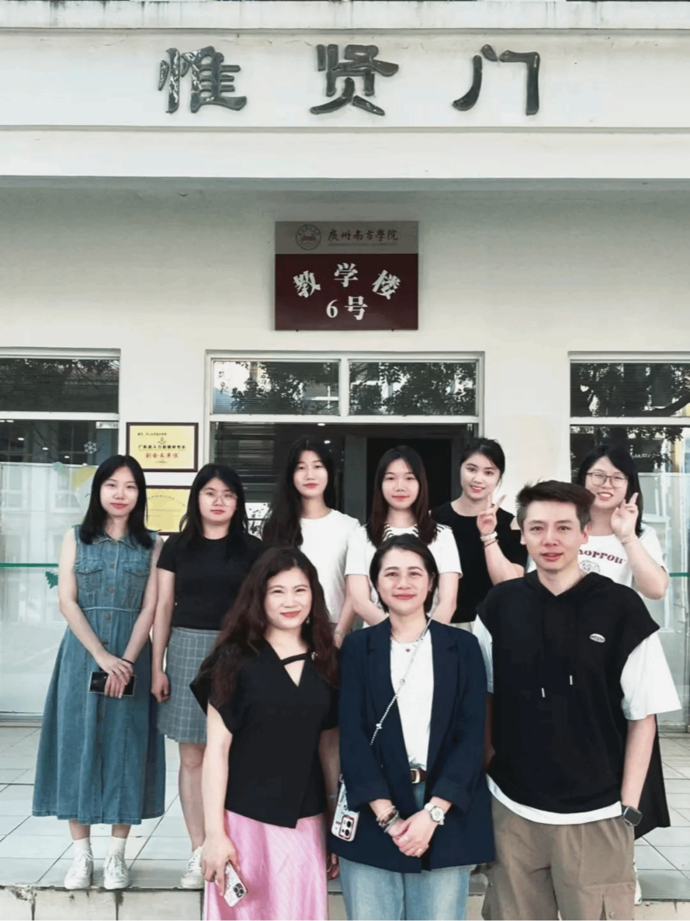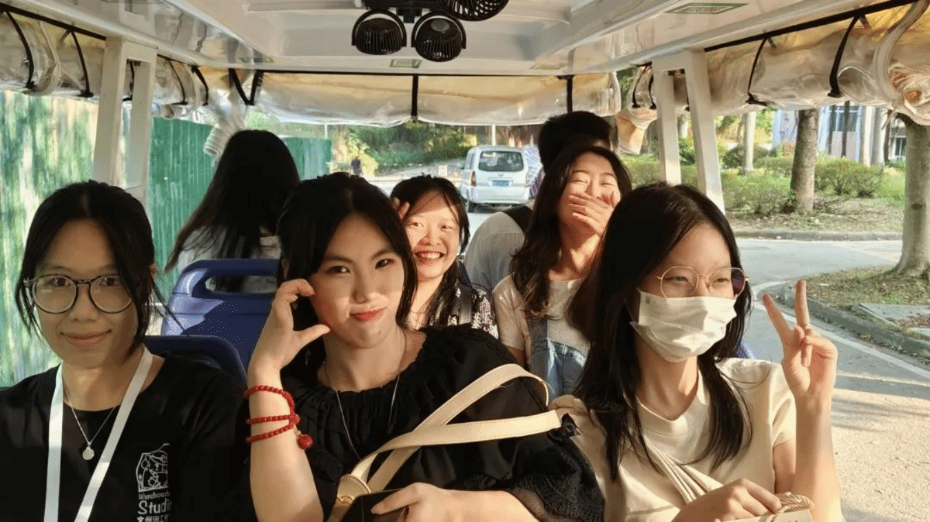 在文管助理团讲解同学的带领下,校友学长学姐与潘晓蝶主任、周先捷老师和张秀蓉老师一起乘车游览校园,一起走过那熟悉的教室、那曾经共同挥洒汗水的操场,并且参观了文州洲工作室的新驻地。他们彼此分享美好的回忆,期待学校未来发展更上一层楼,之后大家带着欢笑返回六教合影留念。