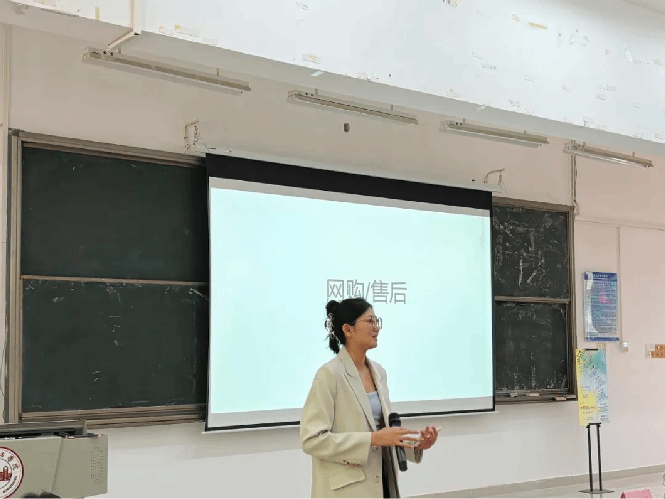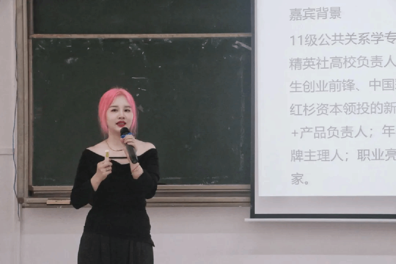 在正式分享会开始前,校友们与公关教师们在6教101会议室进行了座谈会。公共关系学系主任蔡宝婧老师先对校友的到来表示了热烈欢迎,随后介绍了公共关系专业的建设情况。校友和老师也做了自我介绍,师生间互话生活家常,气氛欢乐融洽。