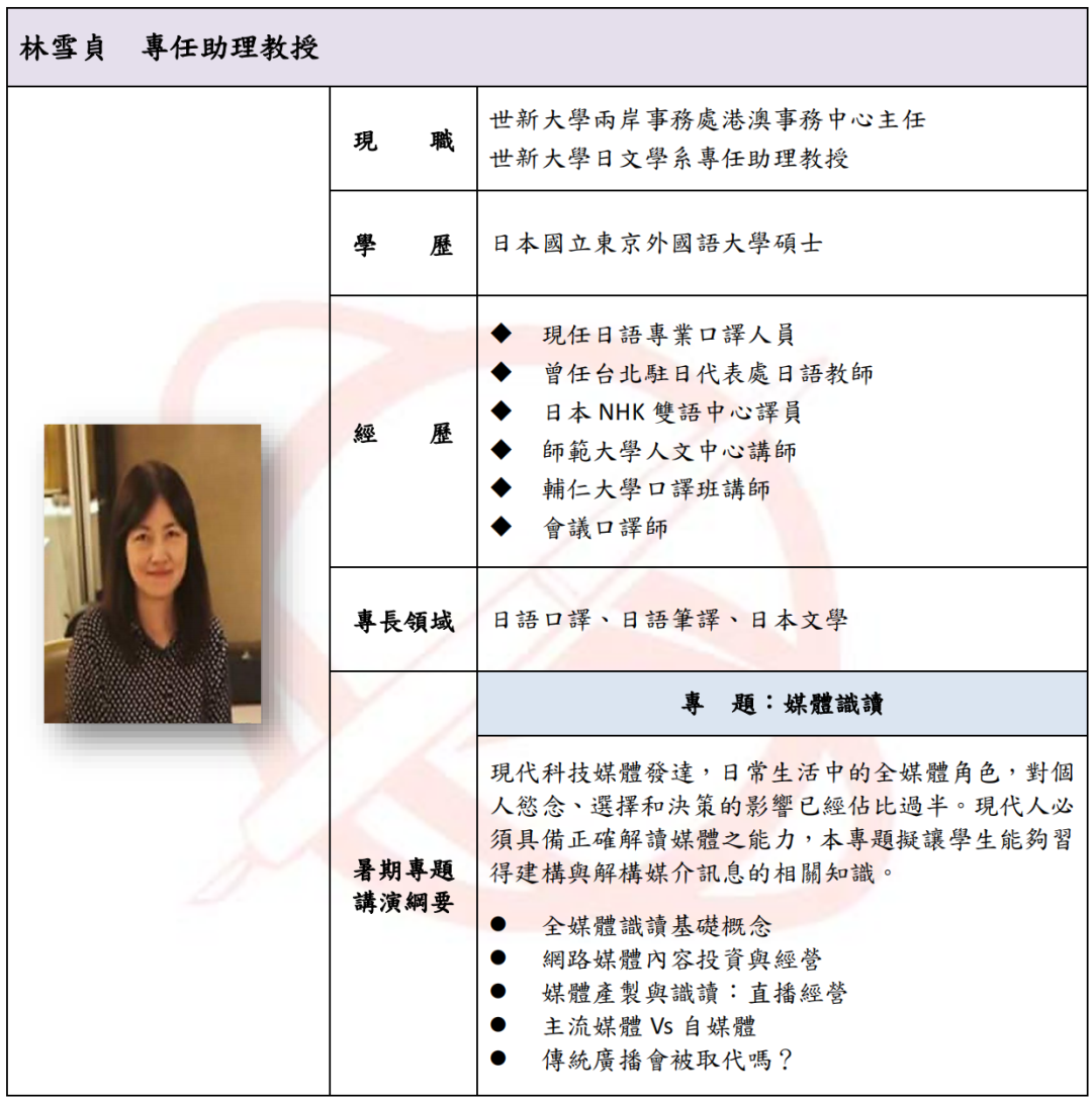 世新大学为大陆地区学生申请短期研修简章2023年秋季班,设有三个研修班: