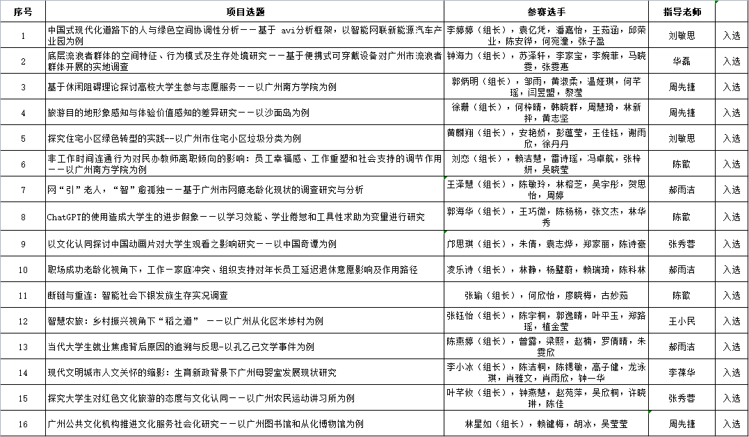 我们于2023年5月25日收到并提交参赛调研策划书。6月1日,评委对参赛项目进行评审。评审老师以参赛小组题目的合理性、选题的根据以及研究方法为主要评判依据,最终确认16个项目进入初赛,现将通过初赛的初审结果进行公示。