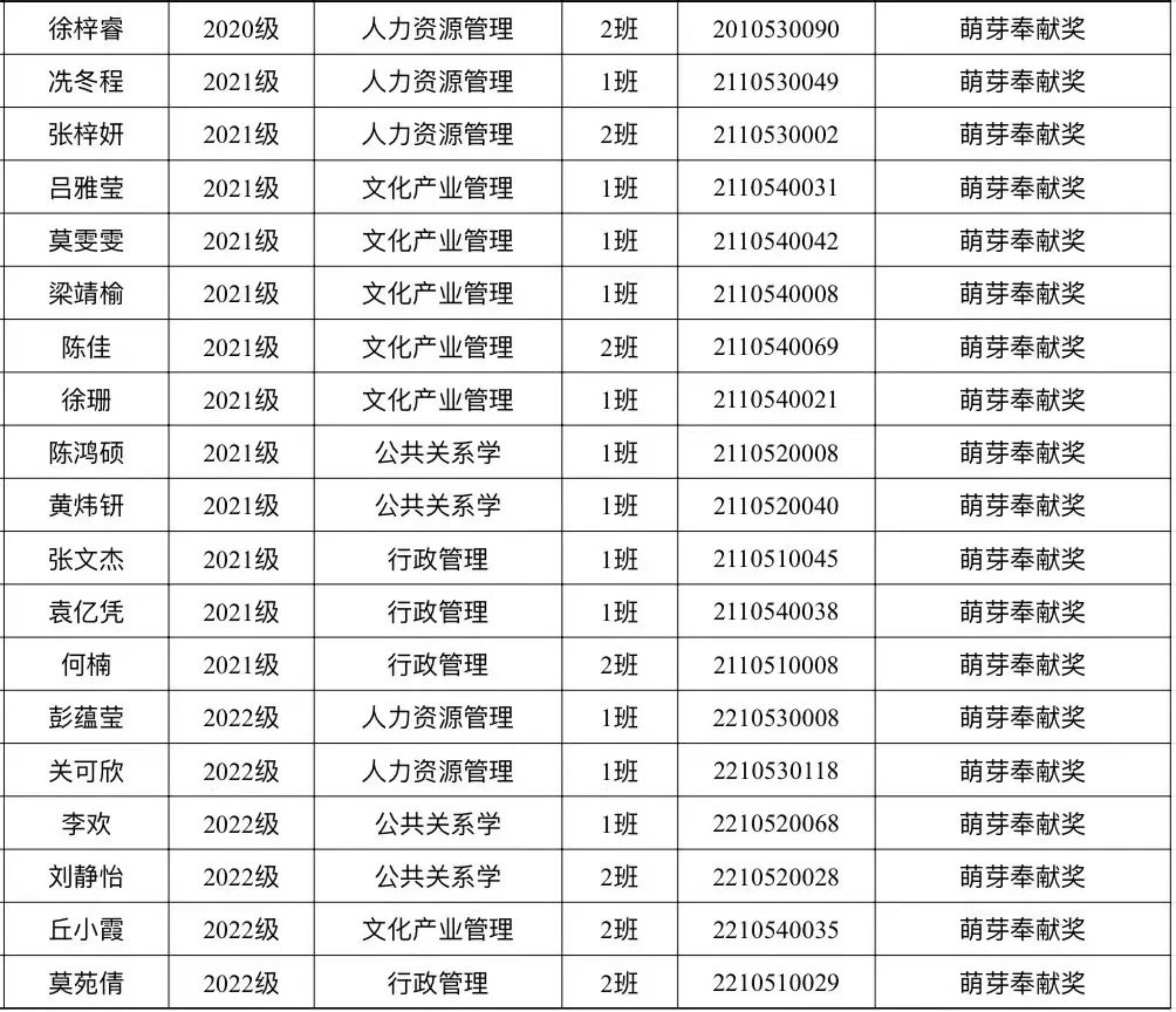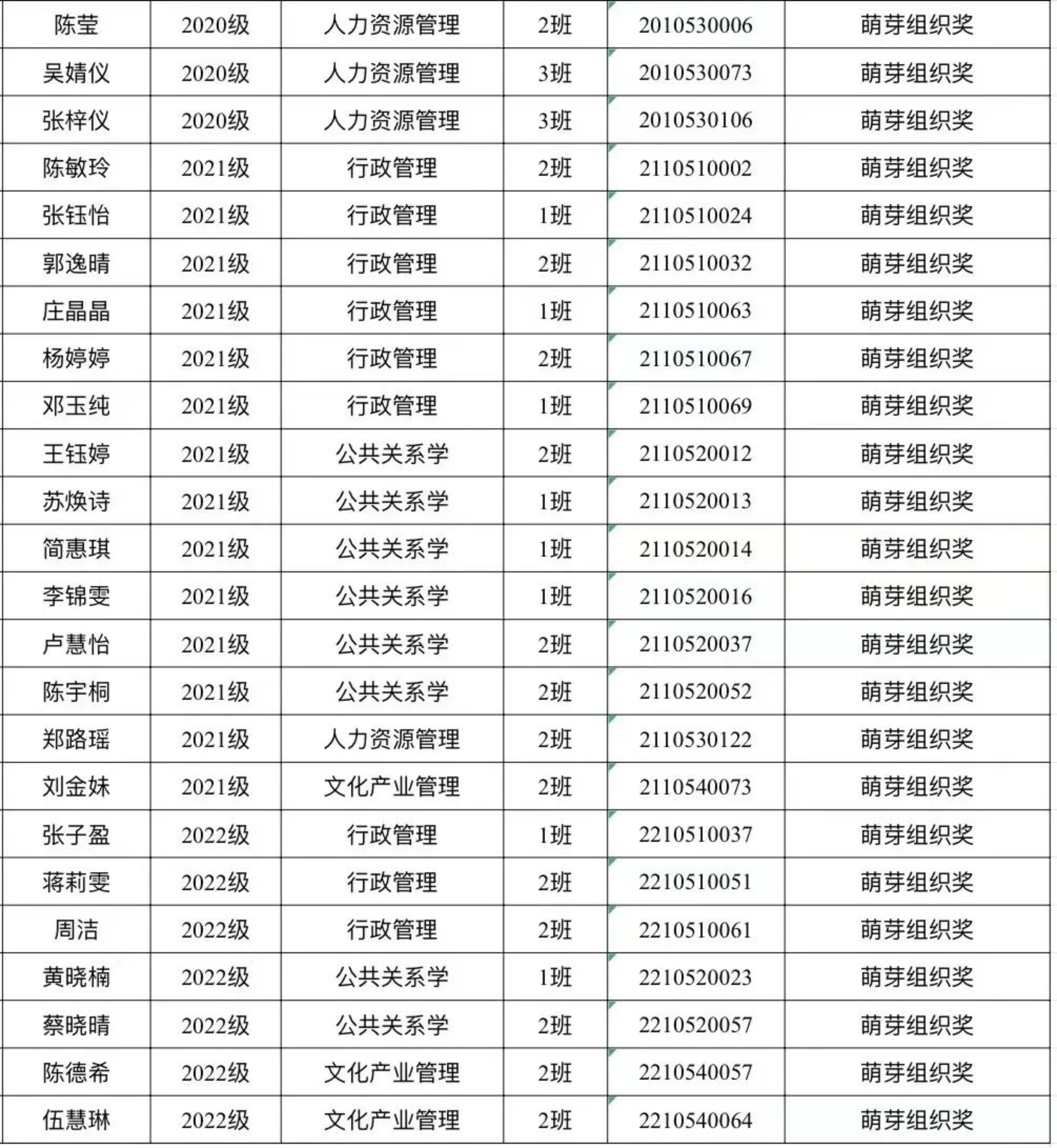 根据《9428cn太阳集团古天乐公共管理学院萌芽奖学金实施办法》以及《9428cn太阳集团古天乐公共管理学院萌芽奖学金评审细则》,经学生个人申请、班级工作小组评分、学院工作小组评分、评审委员会审核,共评选出62位同学获得公共管理学院第二届萌芽奖学金,其中萌芽创新奖5人、萌芽文体奖6人、萌芽组织奖24人、萌芽奉献奖19人、萌芽新生奖8人,萌芽学风班3个,现将具体名单公示如下: