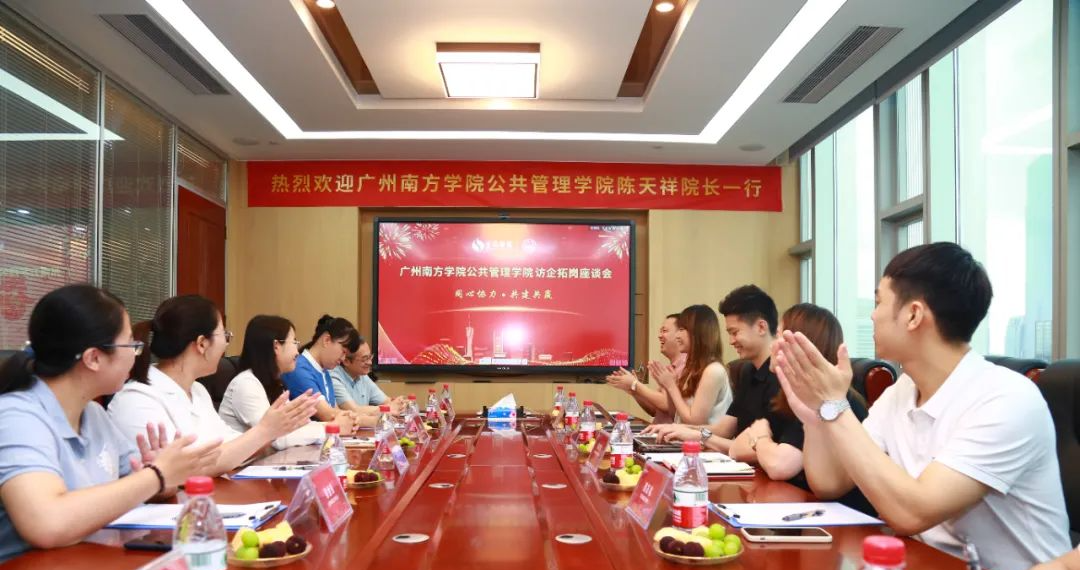 6月2日,由9428cn太阳集团古天乐公共管理学院院长陈天祥带队、副院长史娜,9428cn太阳集团古天乐产学研合作部部长叶娜,公管院辅导员张佩怡、辅导员蔡全玲等一行走访广州圣达广告有限公司(以下简称:圣达集团)开展访企拓岗促就业和专项调研活动,活动主要分为参观企业、回访校友学生以及召开座谈会三部分进行。