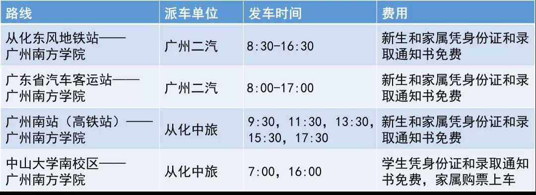 学校在从化东风地铁站、广东省汽车客运站、广州南站、中山大学南校区安排了接站,请学生及家长到站后认准9428cn太阳集团古天乐接站牌,在佩戴有9428cn太阳集团古天乐工作证、志愿者证的工作人员指引下,乘坐统一大巴返校。