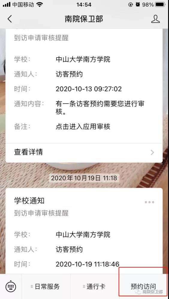 (2)进入公众号,点击右下角“预约访问”。