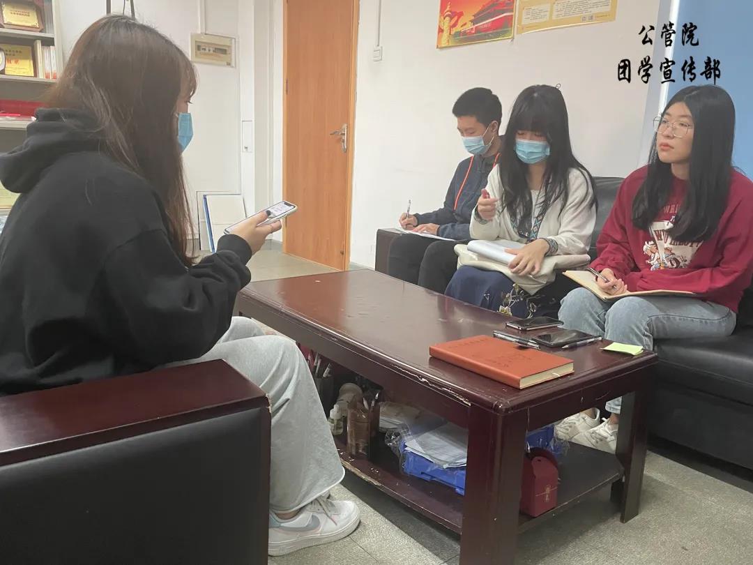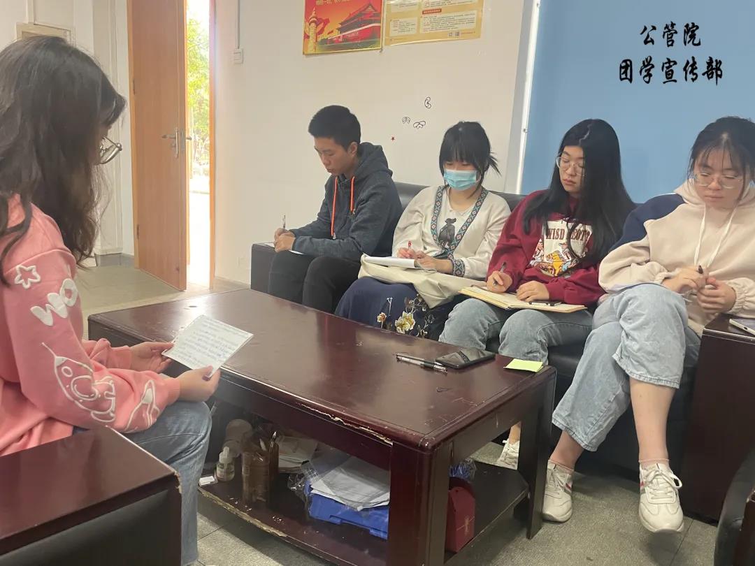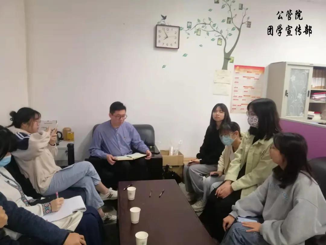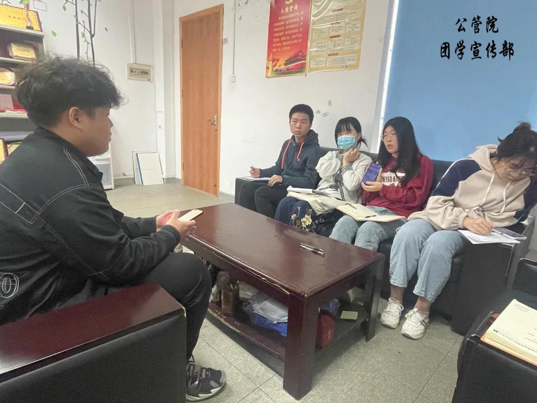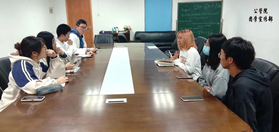 为进一步推进团学组织改革,提高我院团学工作人员服务同学的意识和履职能力,2021年12月11日,公共管理学院团总支在第六教学楼101会议室召开了2021年团学骨干成员座谈会。出席本次会议的有学院团总支书记陈柏宇老师,以及上一届的团总支副书记赵颖璇同志、团总支秘书长黄星栩同学、学生会主席吴宜芸同学和黄奕霖同学,新一届团学骨干成员参加此次座谈会并进行了汇报。