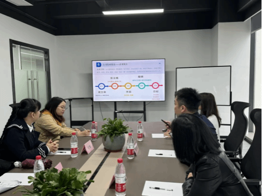云政通(广州)科技有限公司总经理谢海洲、项目经理谢萱萱、行政主管庄文娴对史娜副院长等一行的到来表示欢迎。谢经理带领我们参观公司办公环境,了解公司的业务范围、发展历程、相关背景、企业文化等基本情况。随后就校企合作基础、校企合作规划等相关问题,双方展开了友好的交流。